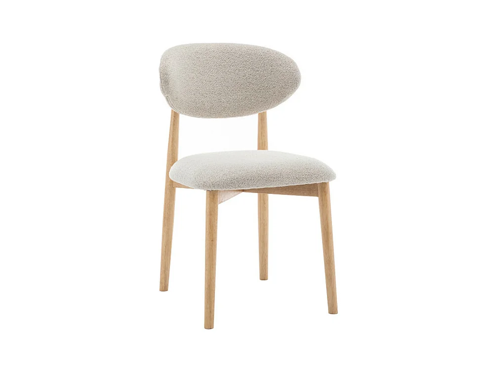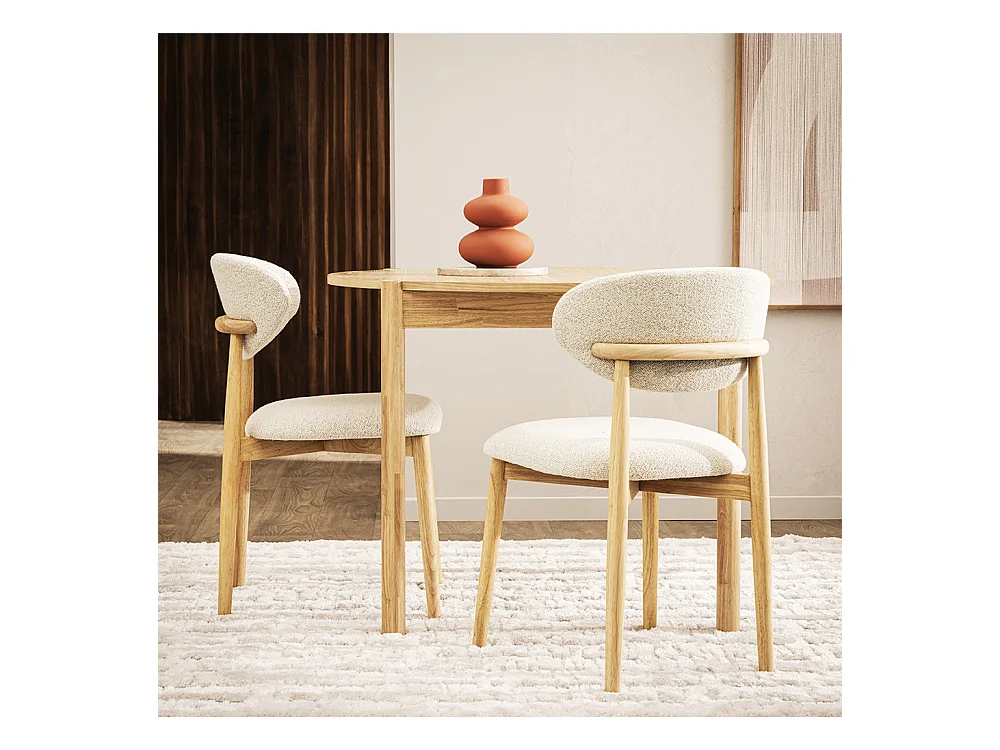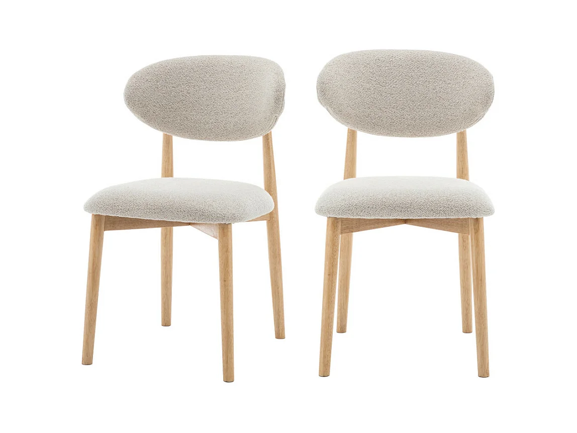 Clara - Lot de 2 chaises en tissu bouclette et bois - Beige