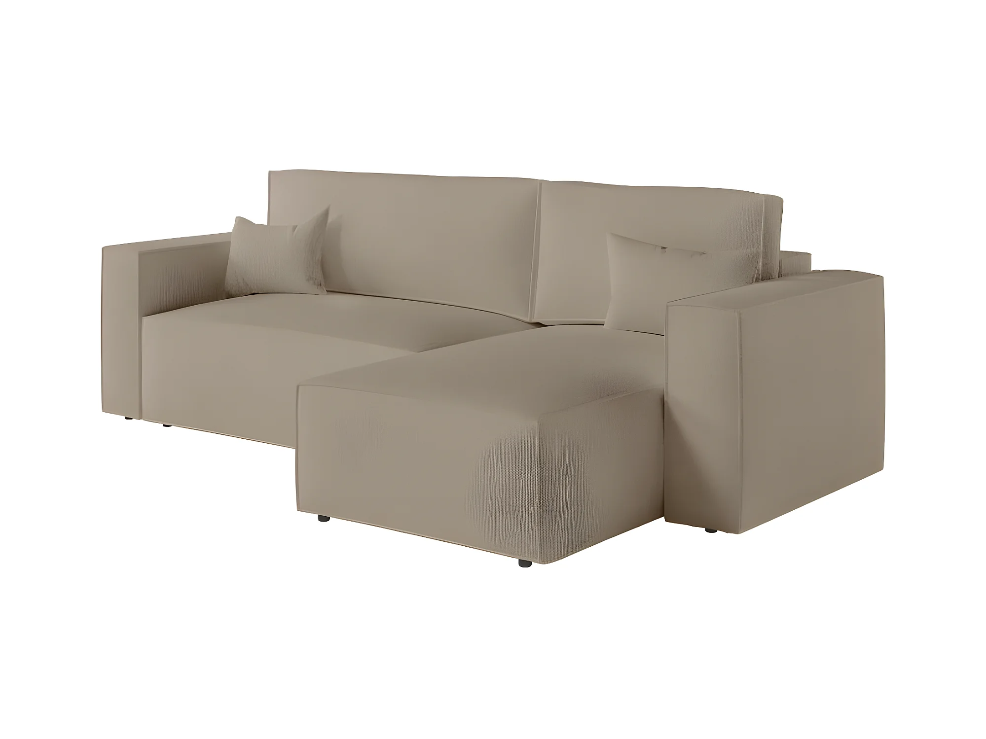 Canapé d'angle 3 places convertible réversible Clarisse avec coffre en tissu bouclette - Taupe - L269 x P159 x H89cm - Loungitude