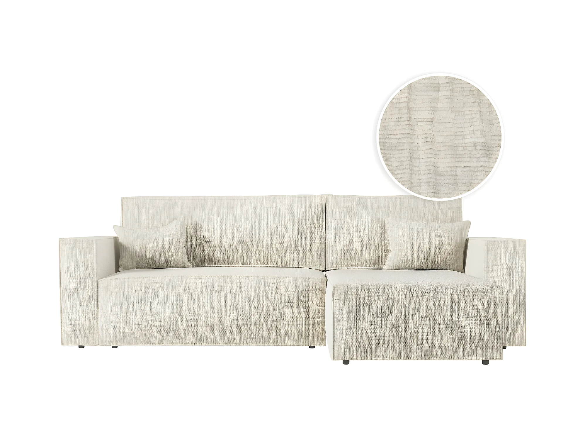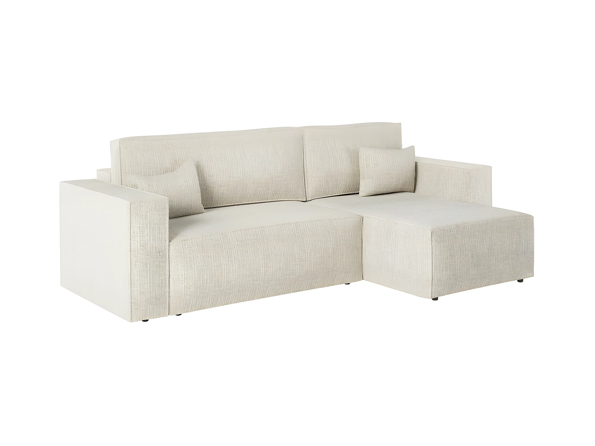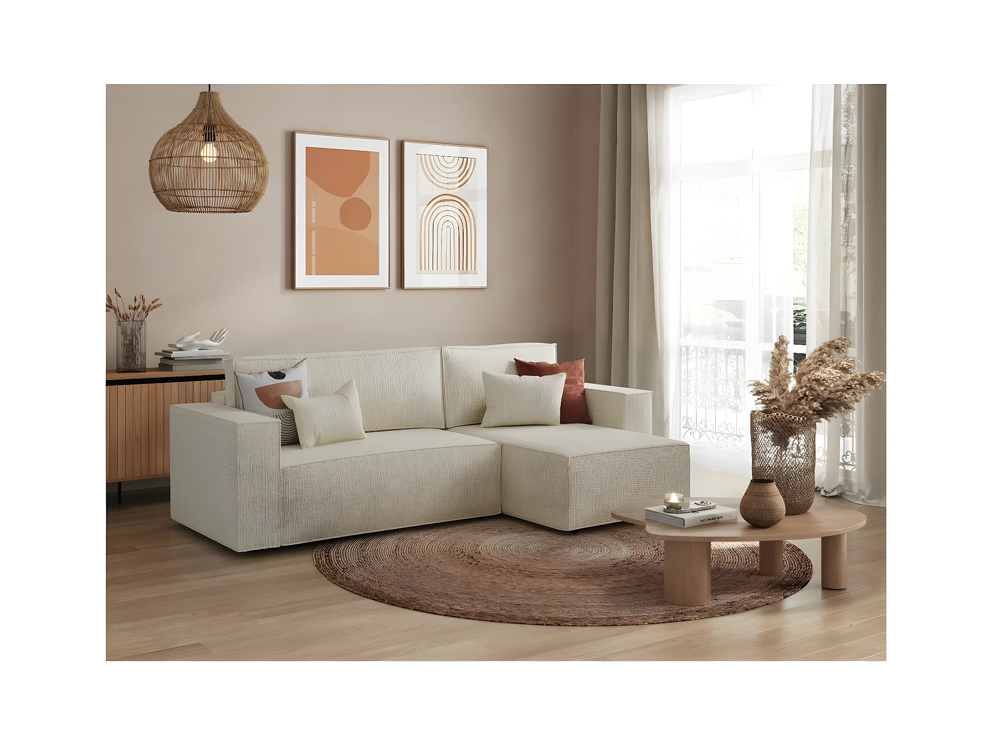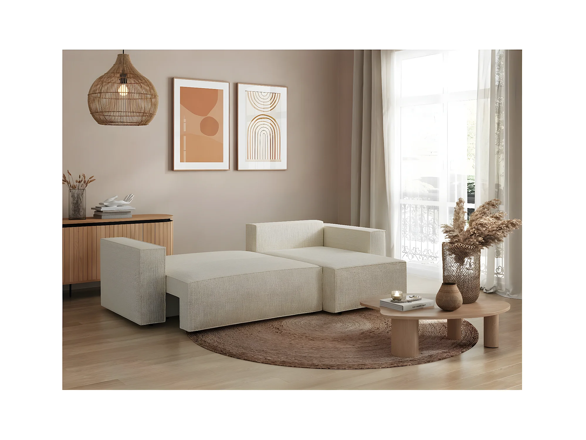 Canapé d'angle 3 places convertible réversible Clarisse avec coffre en tissu texturé - Beige - L269 x P159 x H89cm - Loungitude