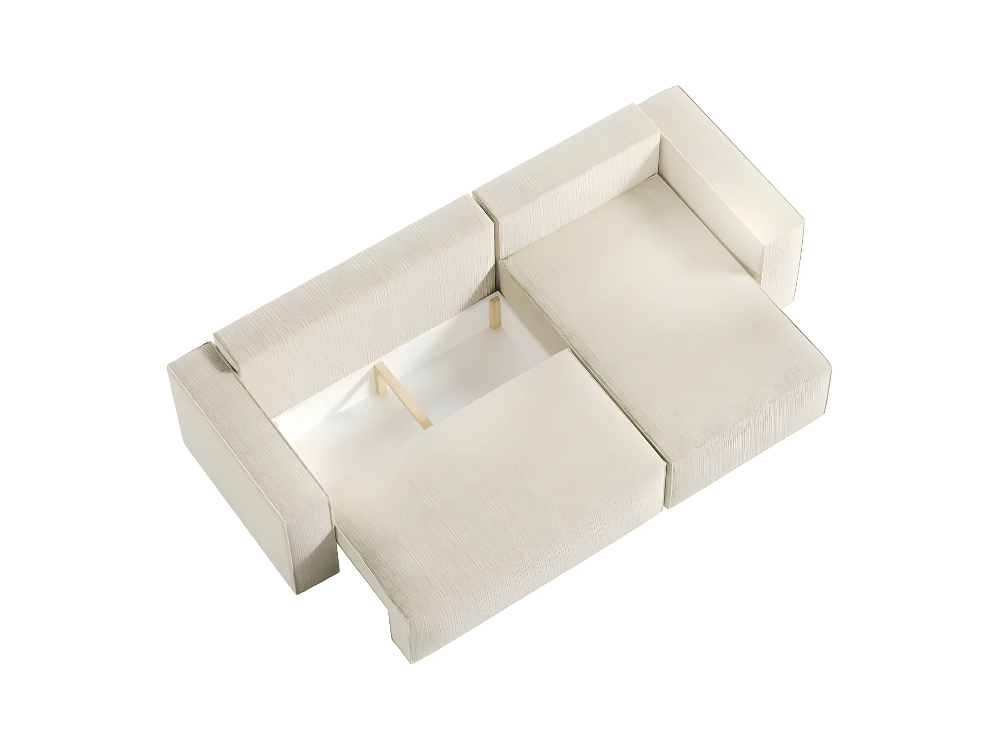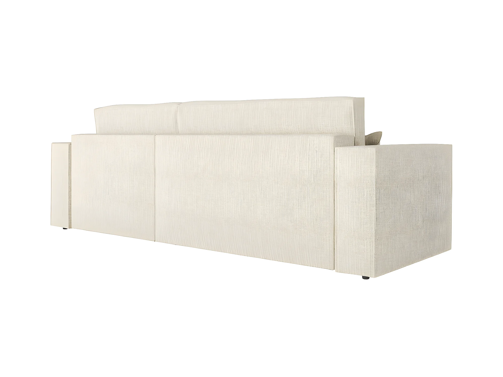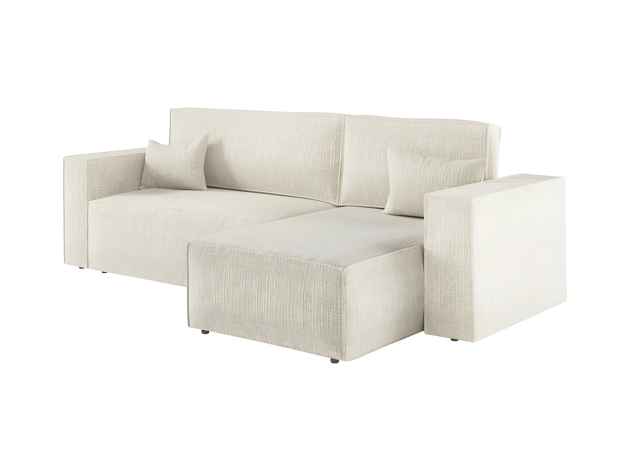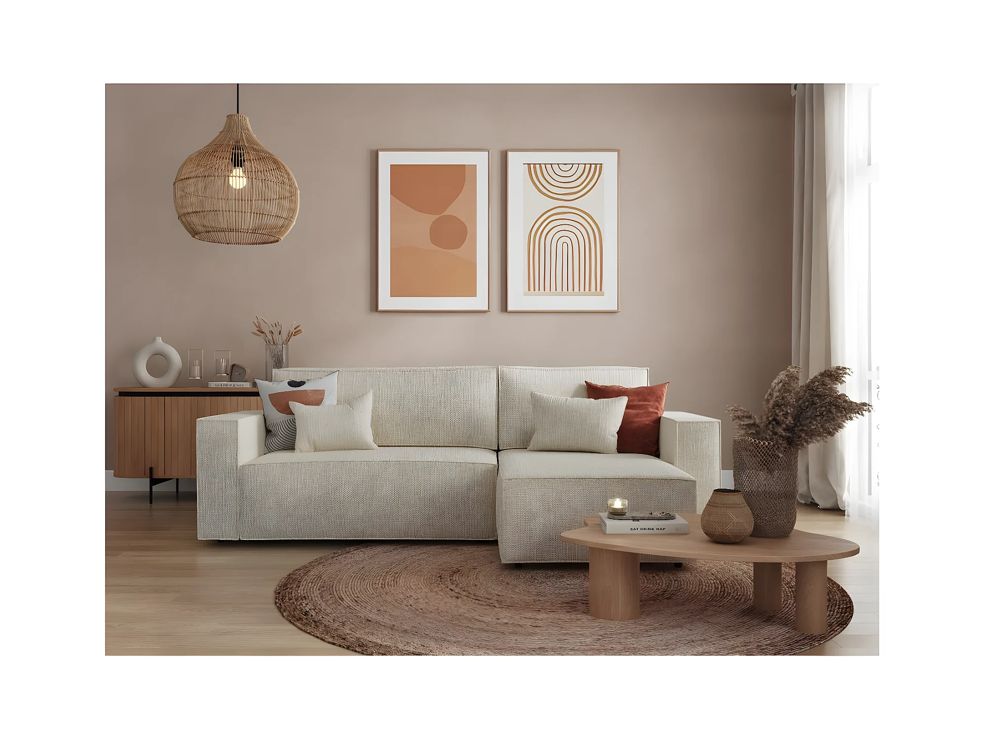 Canapé d'angle 3 places convertible réversible Clarisse avec coffre en tissu texturé - Beige - L269 x P159 x H89cm - Loungitude