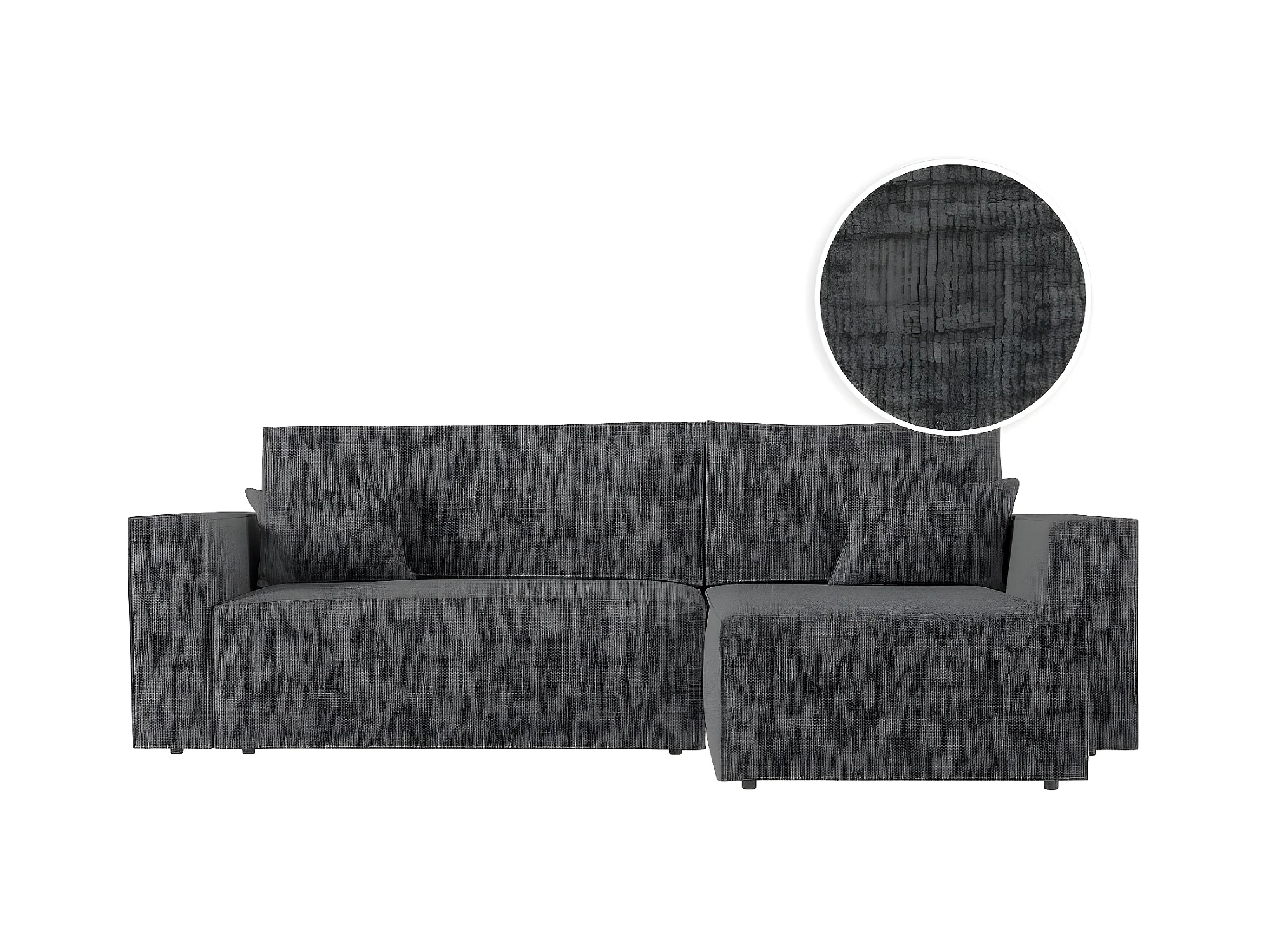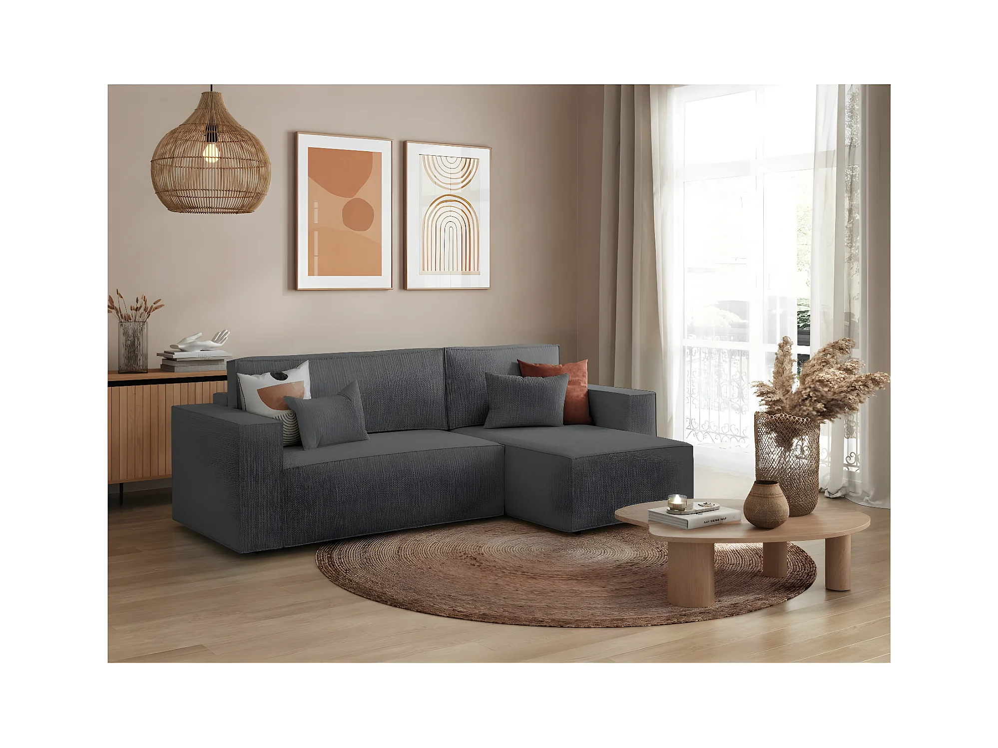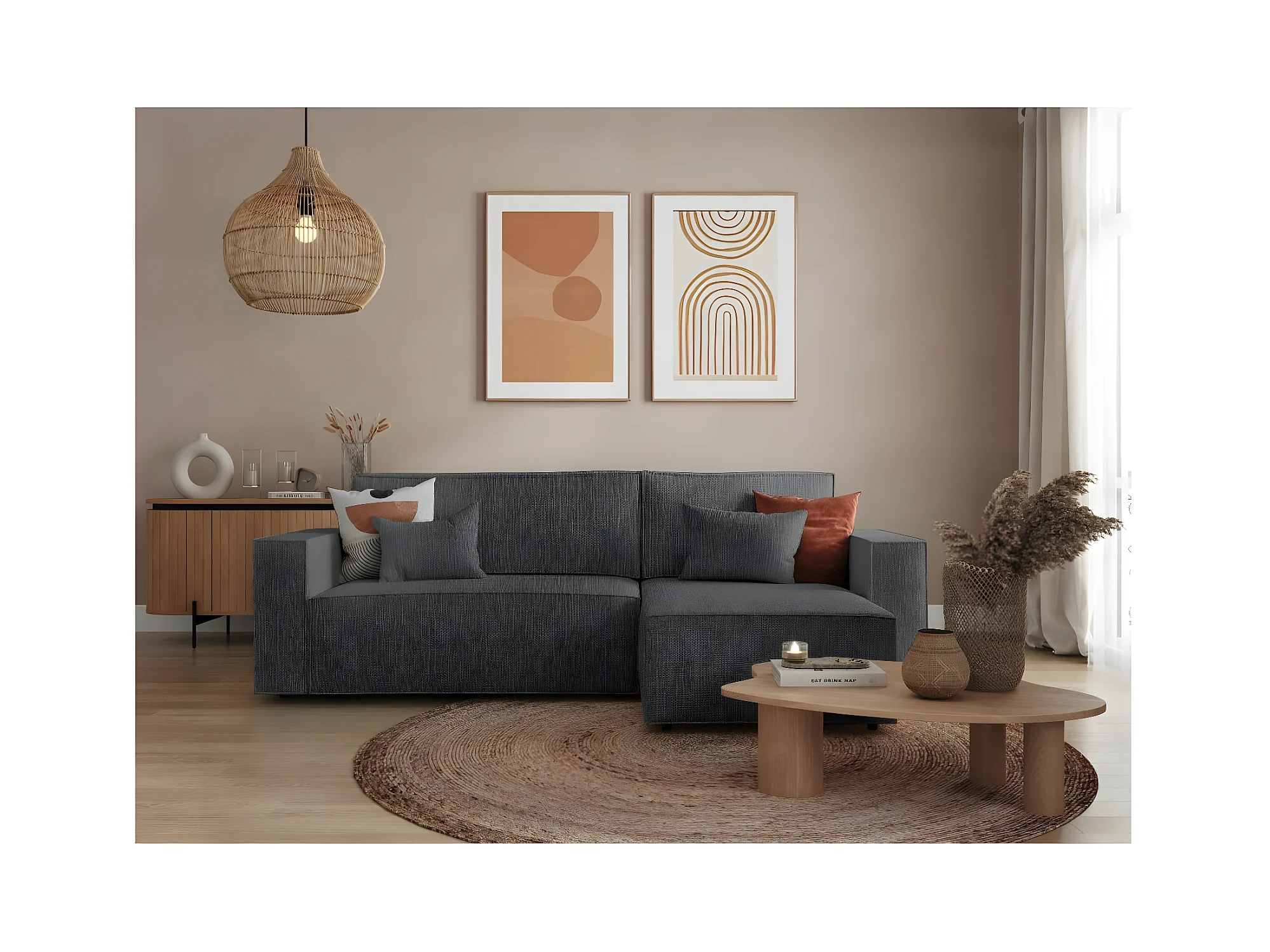 Canapé d'angle 3 places convertible réversible Clarisse avec coffre en tissu texturé - Gris anthracite - L269 x P159 x H89cm - Loungitude