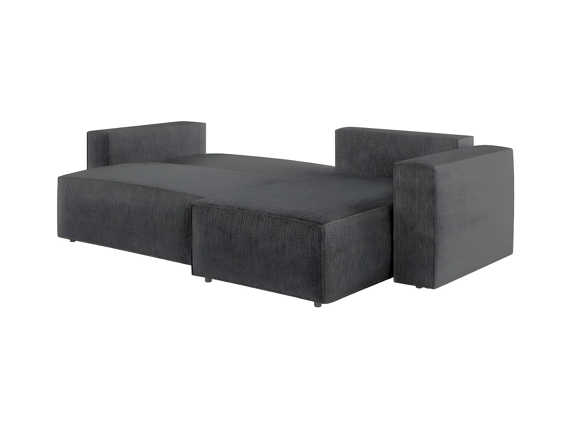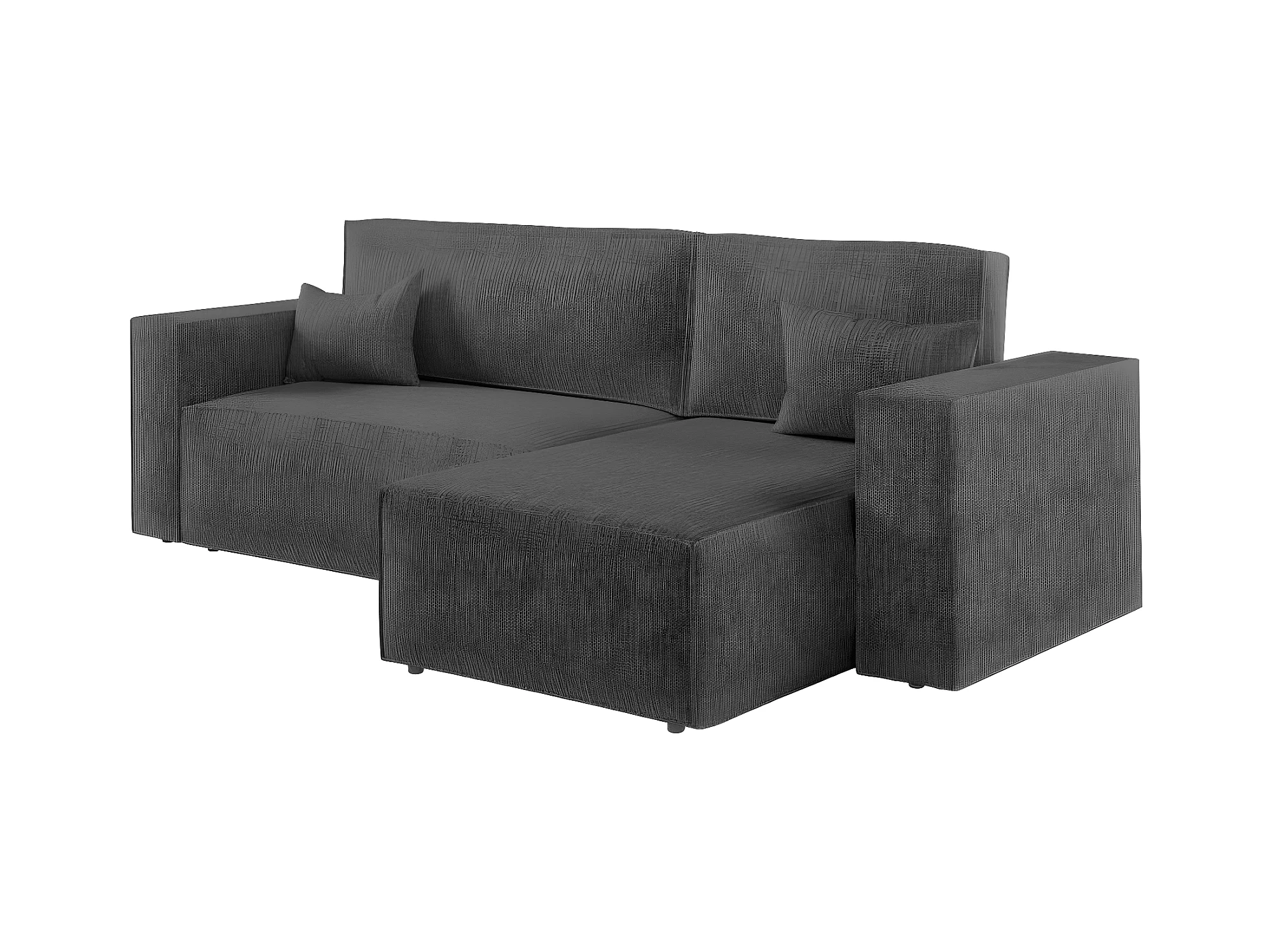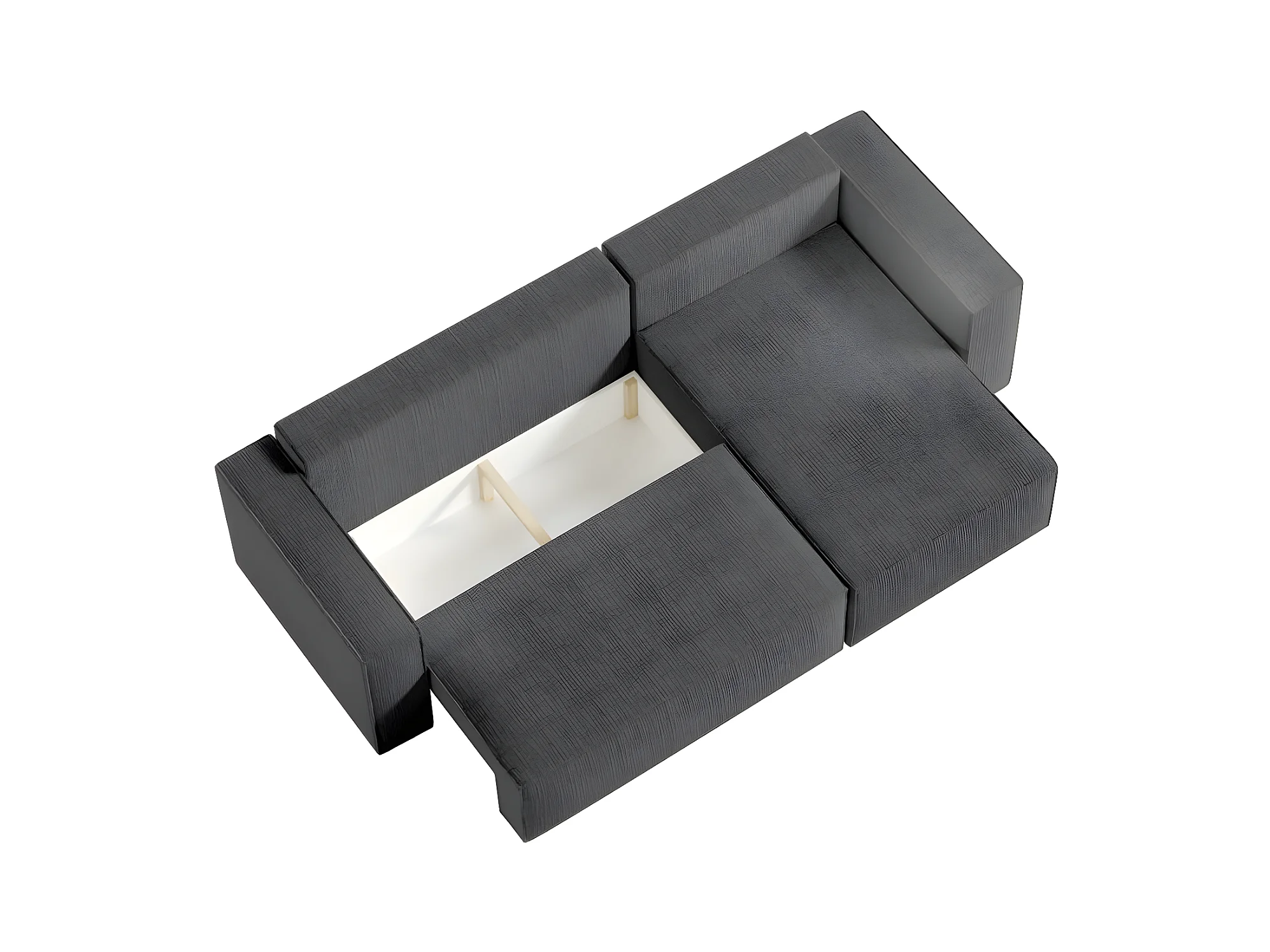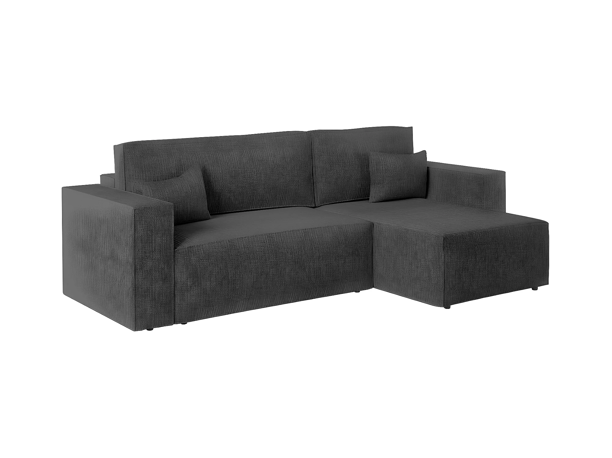 Canapé d'angle 3 places convertible réversible Clarisse avec coffre en tissu texturé - Gris anthracite - L269 x P159 x H89cm - Loungitude