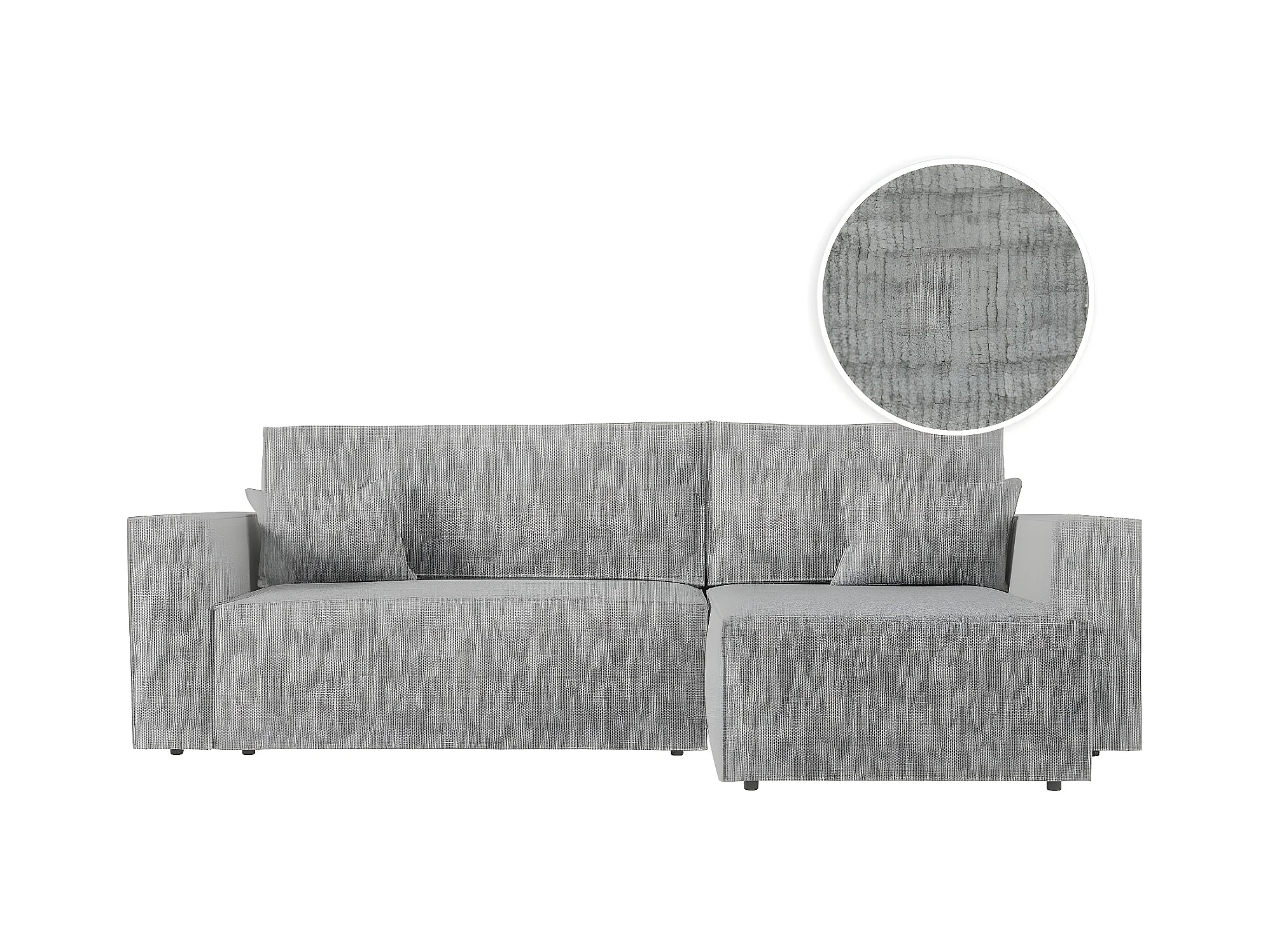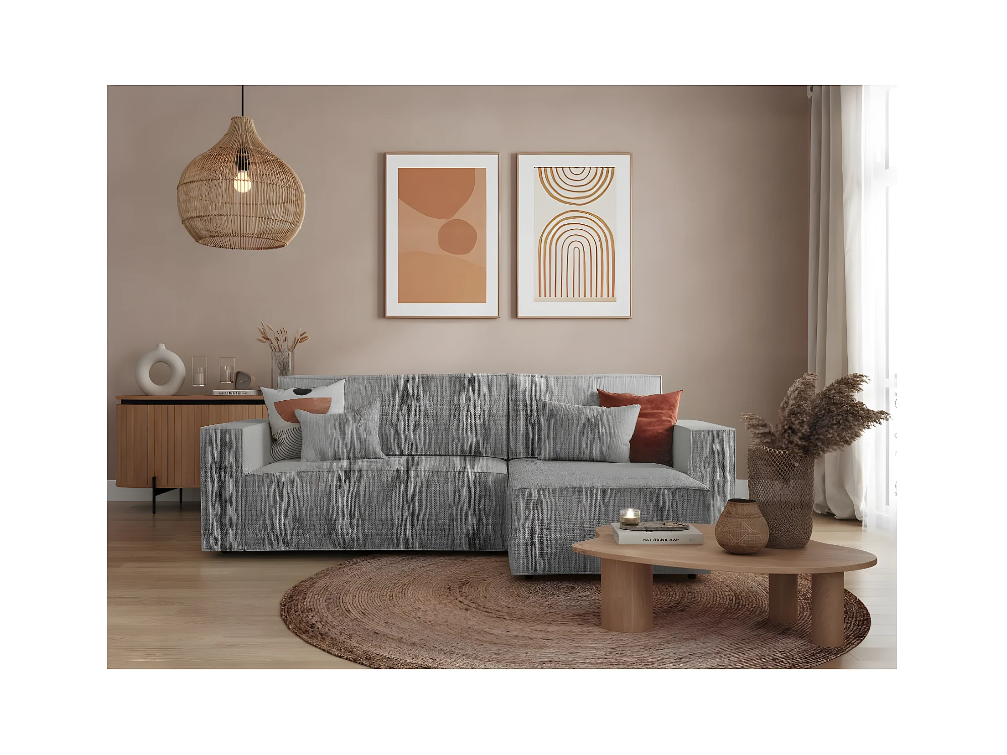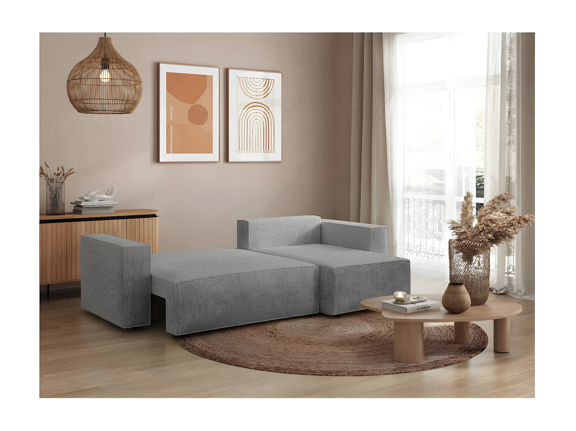 Canapé d'angle 3 places convertible réversible Clarisse avec coffre en tissu texturé - Gris clair - L269 x P159 x H89cm - Loungitude
