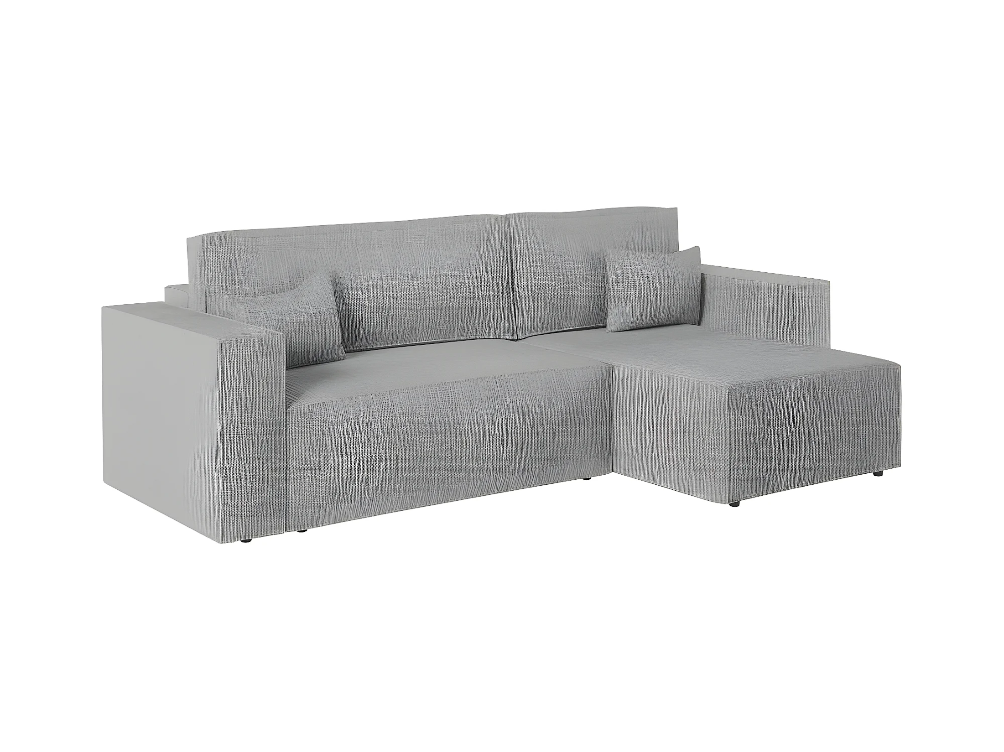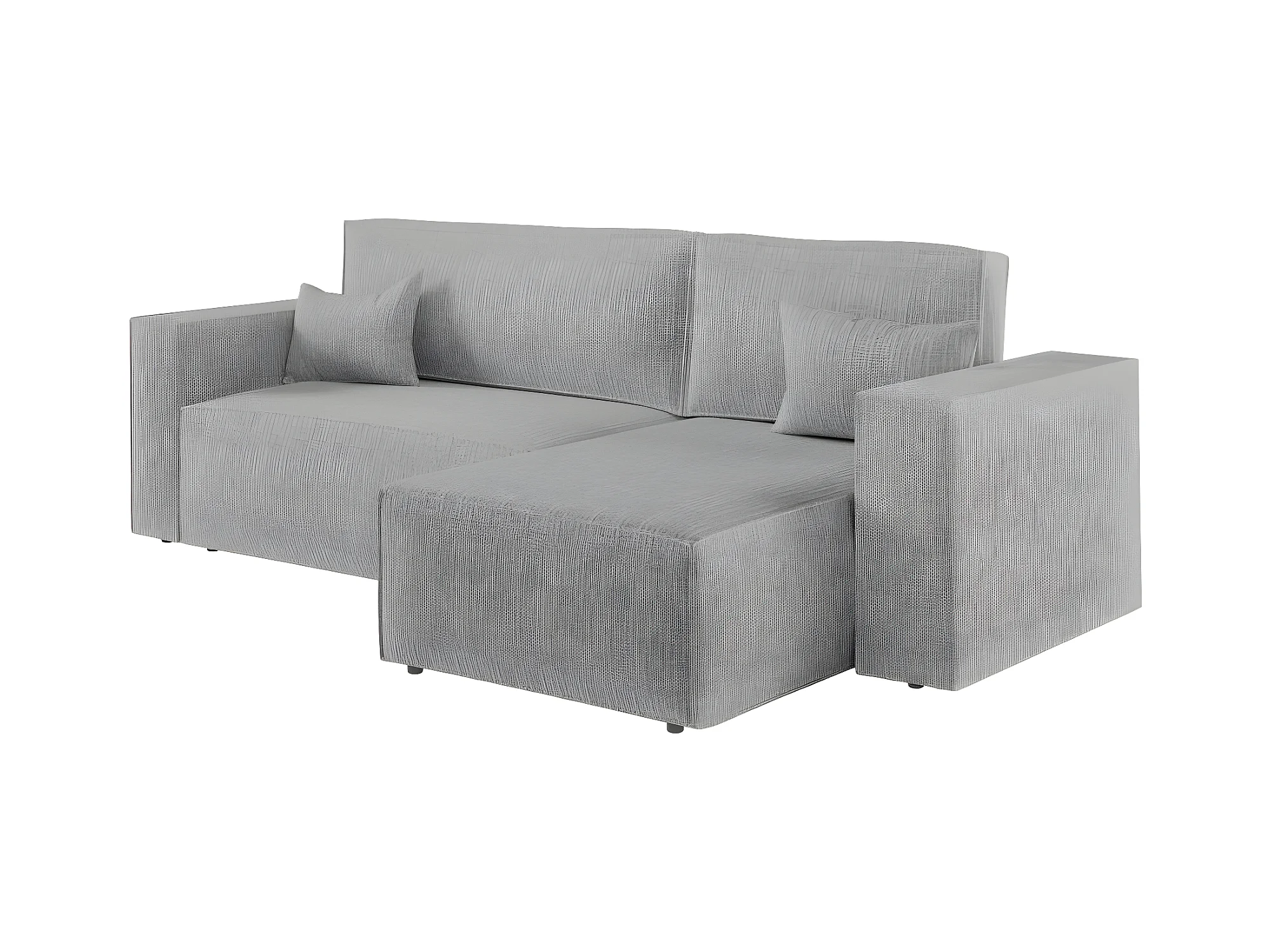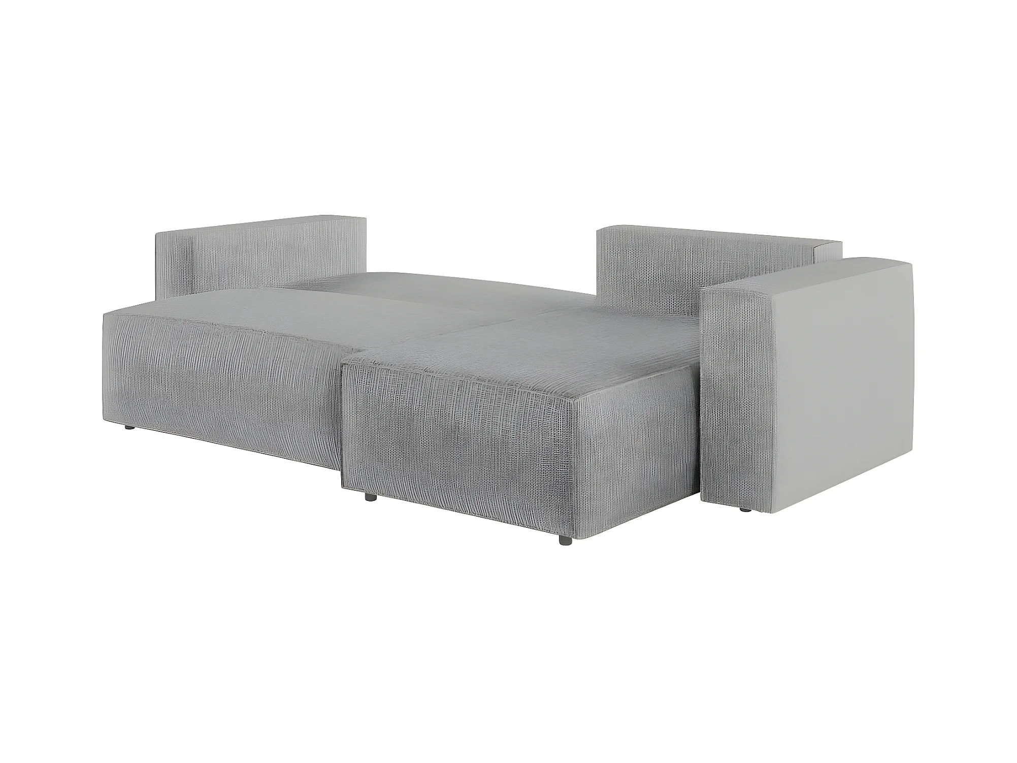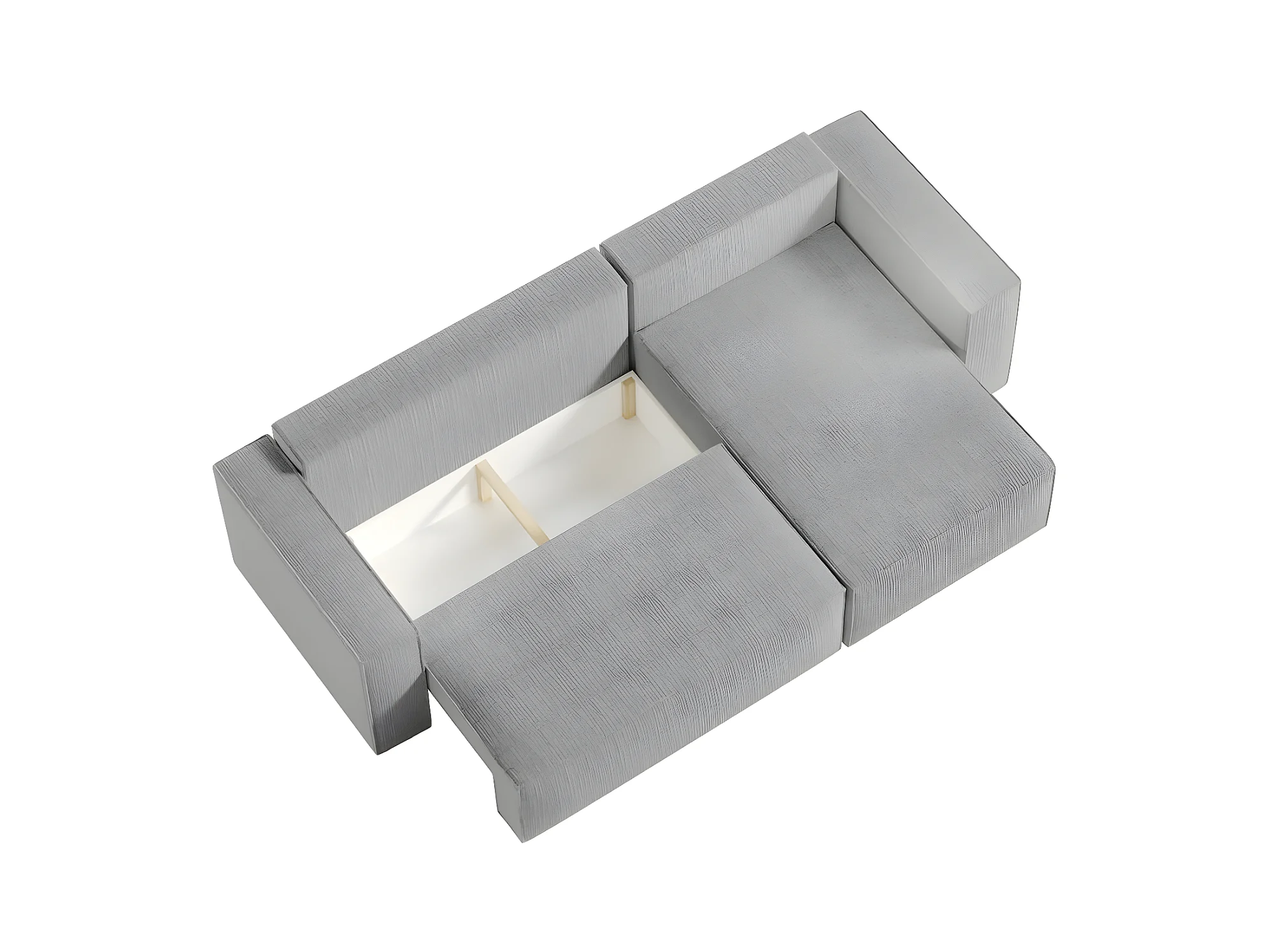 Canapé d'angle 3 places convertible réversible Clarisse avec coffre en tissu texturé - Gris clair - L269 x P159 x H89cm - Loungitude