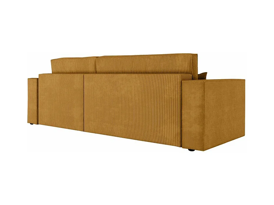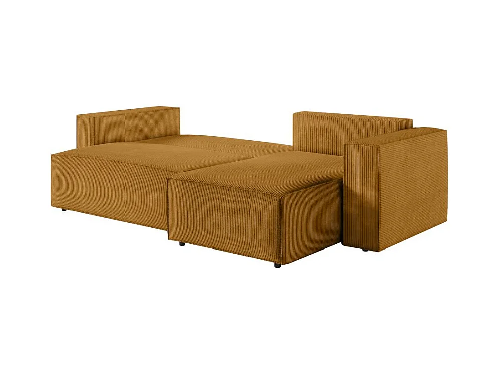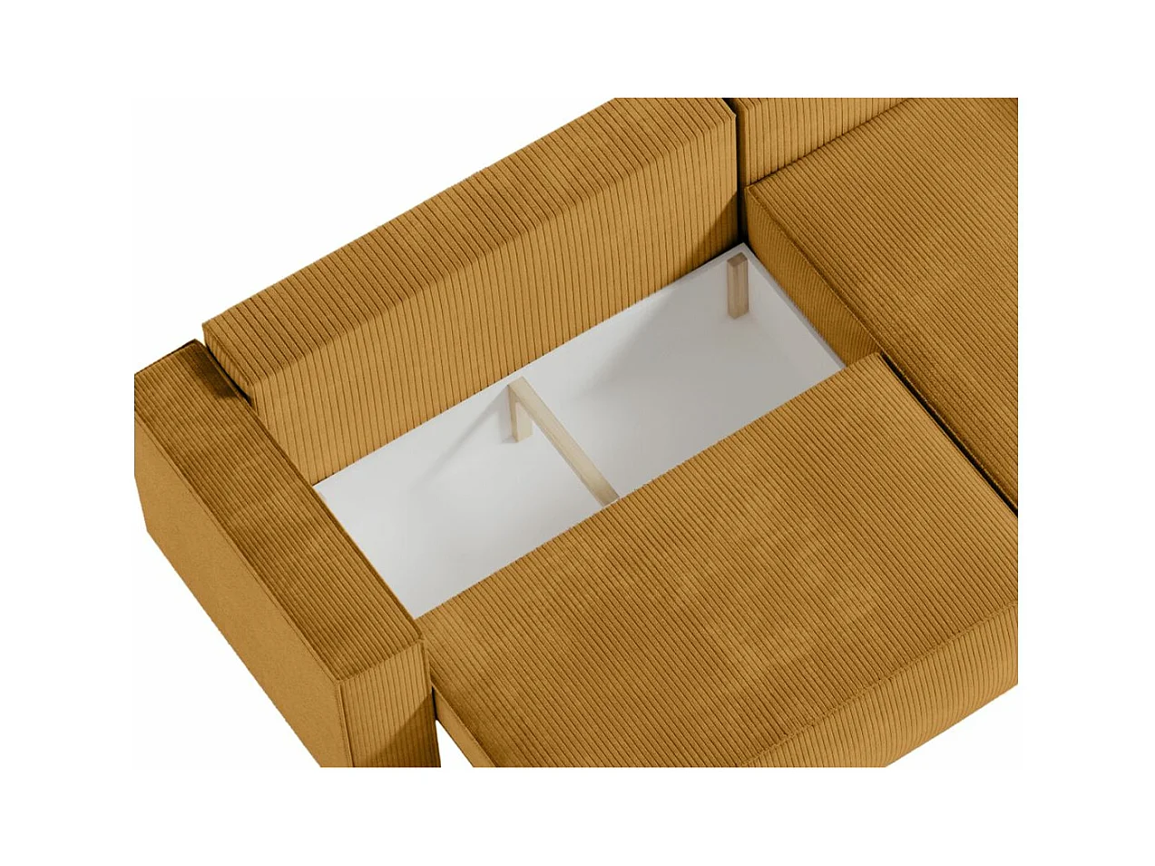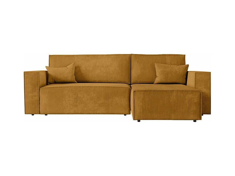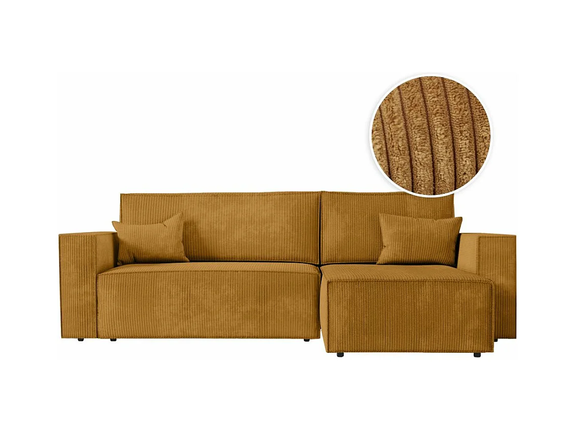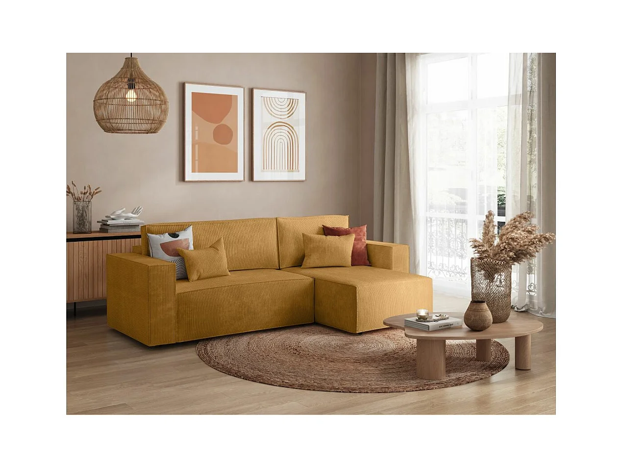 Canapé d'angle 3 places convertible réversible Clarisse avec coffre en velours côtelé - Jaune - L269 x P159 x H89cm - Loungitude