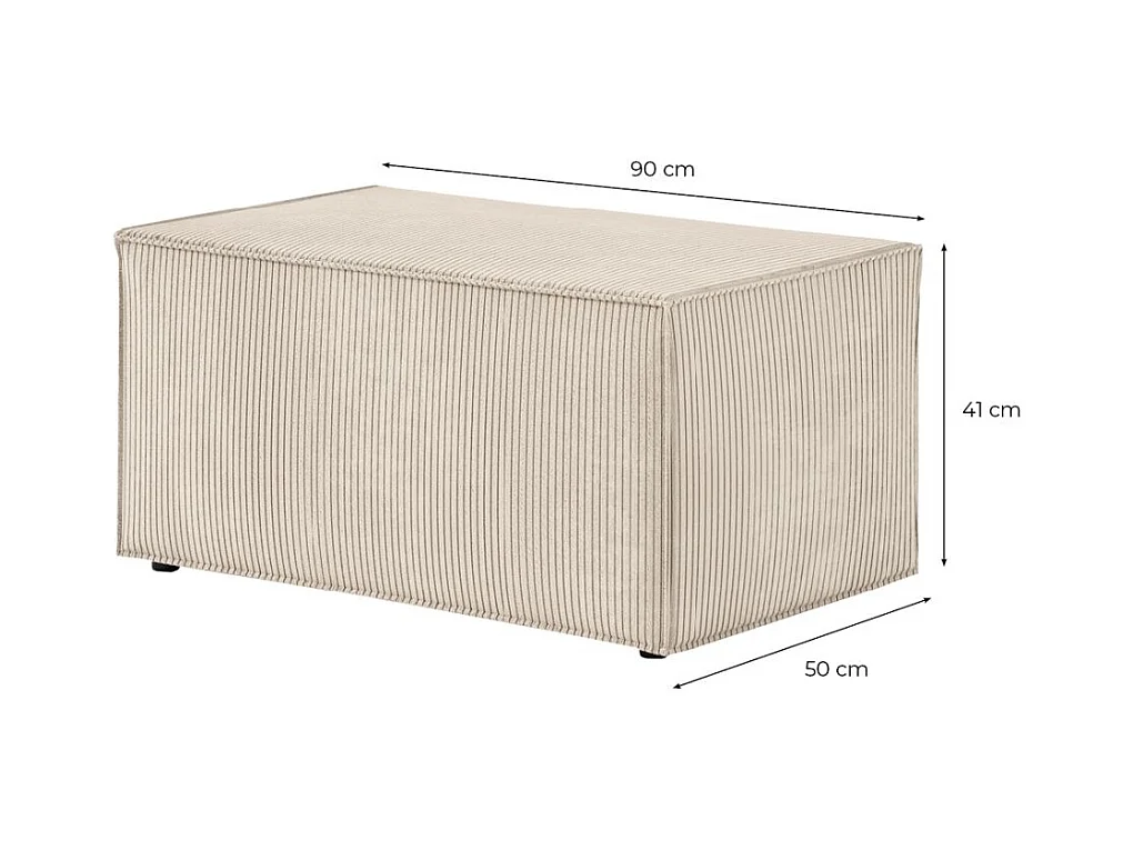 Pouf en velours côtelé Clarisse - Beige - L90 x P50 x H41cm - Loungitude