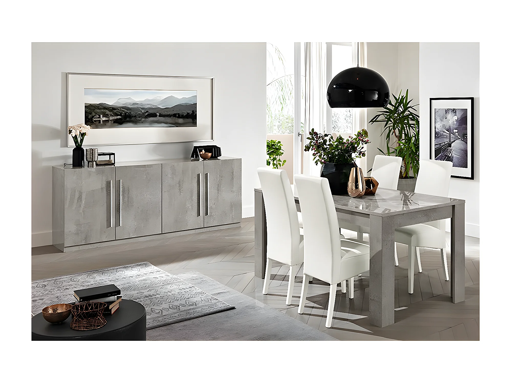 CLARK - Ensemble Séjour Effet Marbre Table 160cm + Buffet 3 Portes