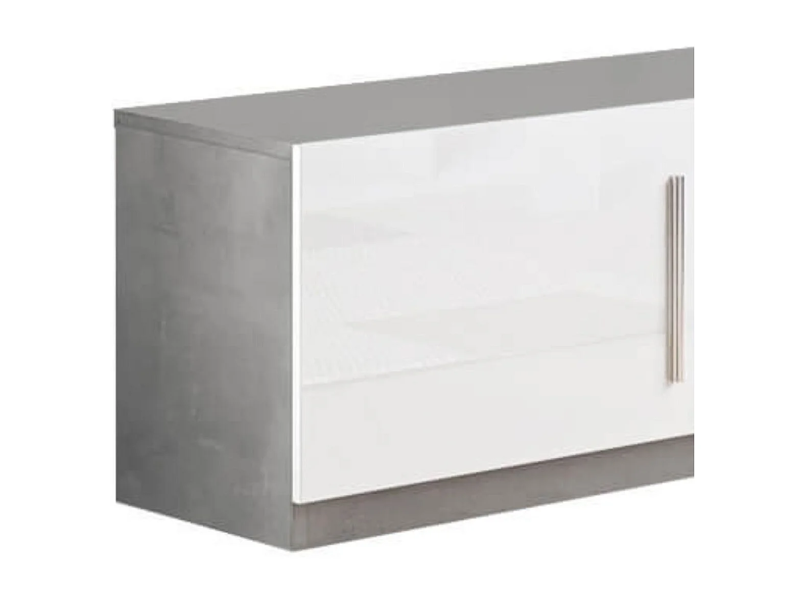 CLARK - Meuble TV 2 Portes Moderne Laqué Blanc et Marbre avec Leds