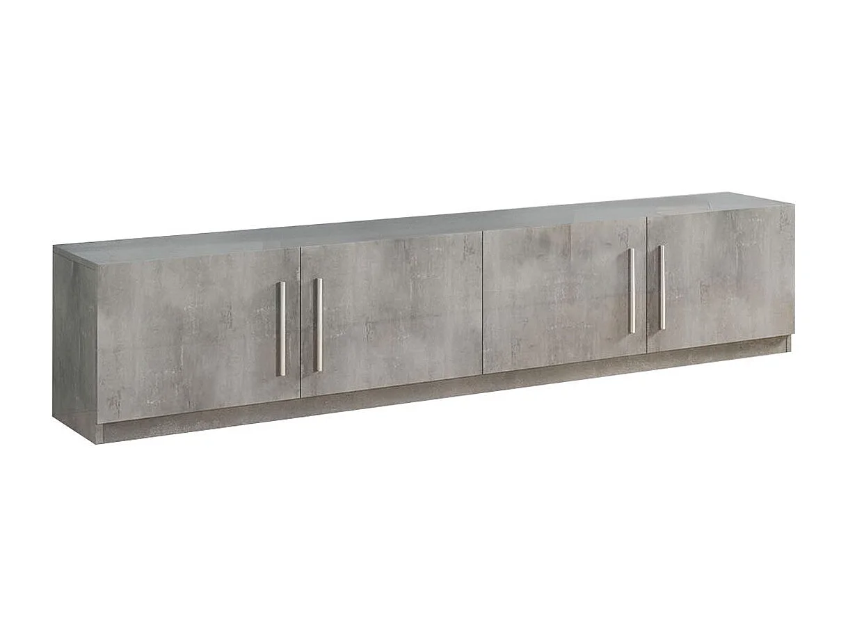 CLARK - Meuble TV 4 Portes Moderne Laqué Effet Marbre Poignées en Métal