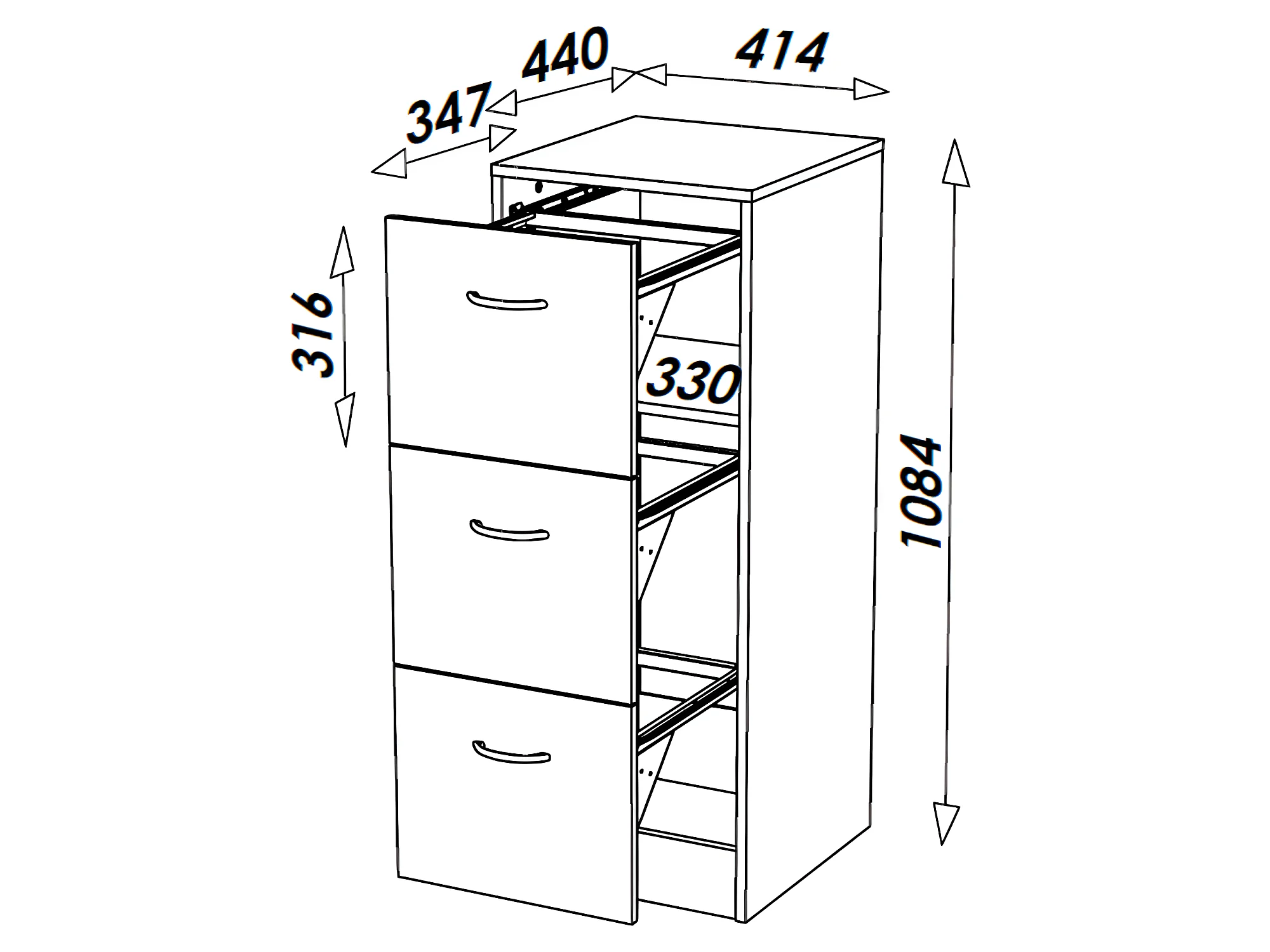 Classeur 3 Tiroirs Pour 75 Dossiers Suspendus 41,4 x 108,4 x 44 cm - Coloris: Aluminium