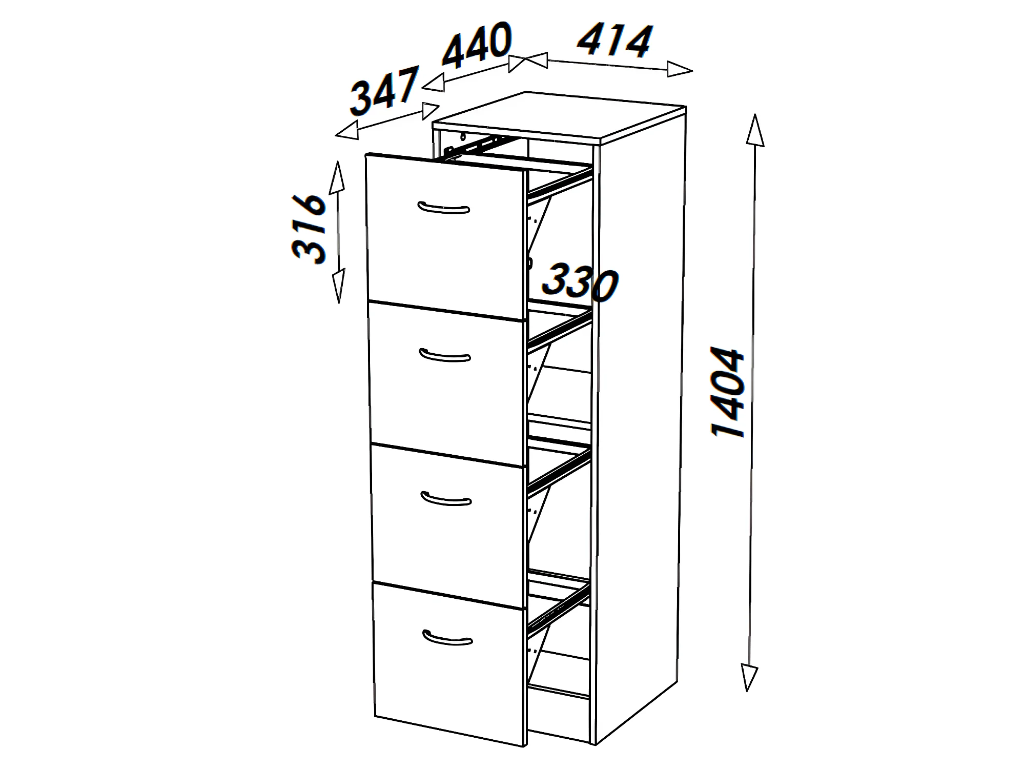 Classeur 4 Tiroirs pour 100 Dossiers Suspendus L 41,4 H 140,4 P 44 cm - Coloris: Aluminium
