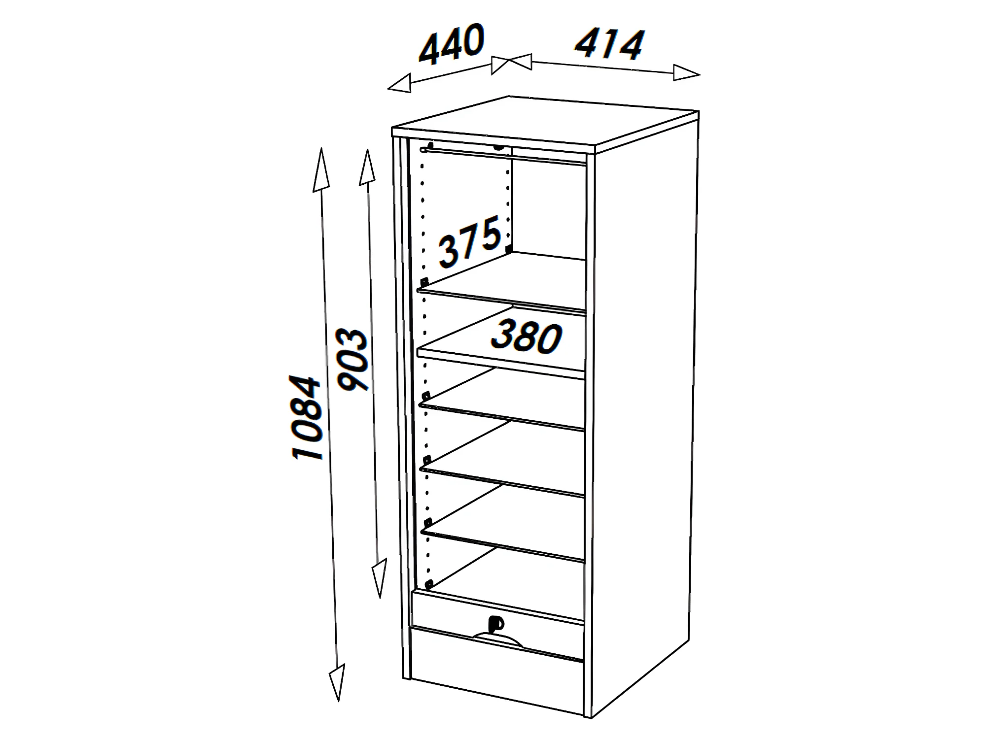 Classeur à Rideau Blanc ou Hêtre 6 Etagères L 41.4 H 108.4 P 44 cm - Coloris: Blanc