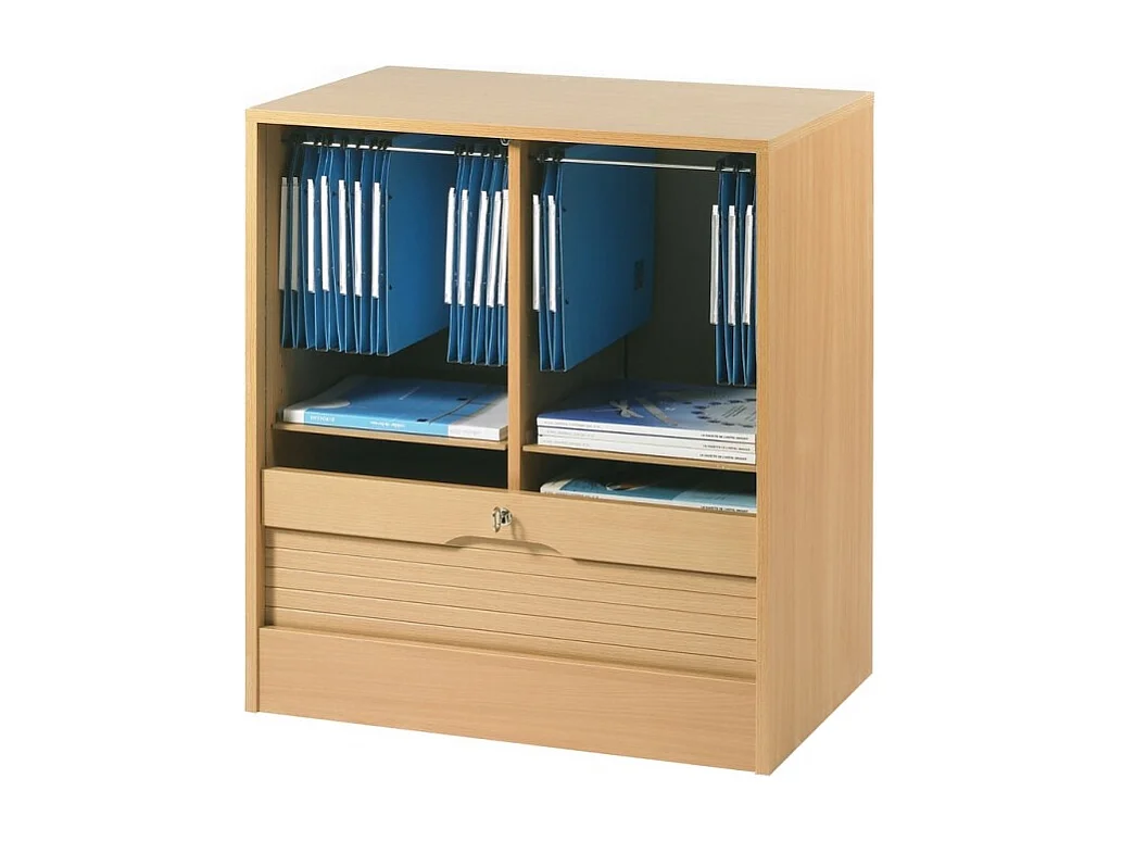 Classeur à Rideau Largeur 70 cm Hauteur 76 cm 8 Niches 2 Kits DS - Coloris: Hêtre