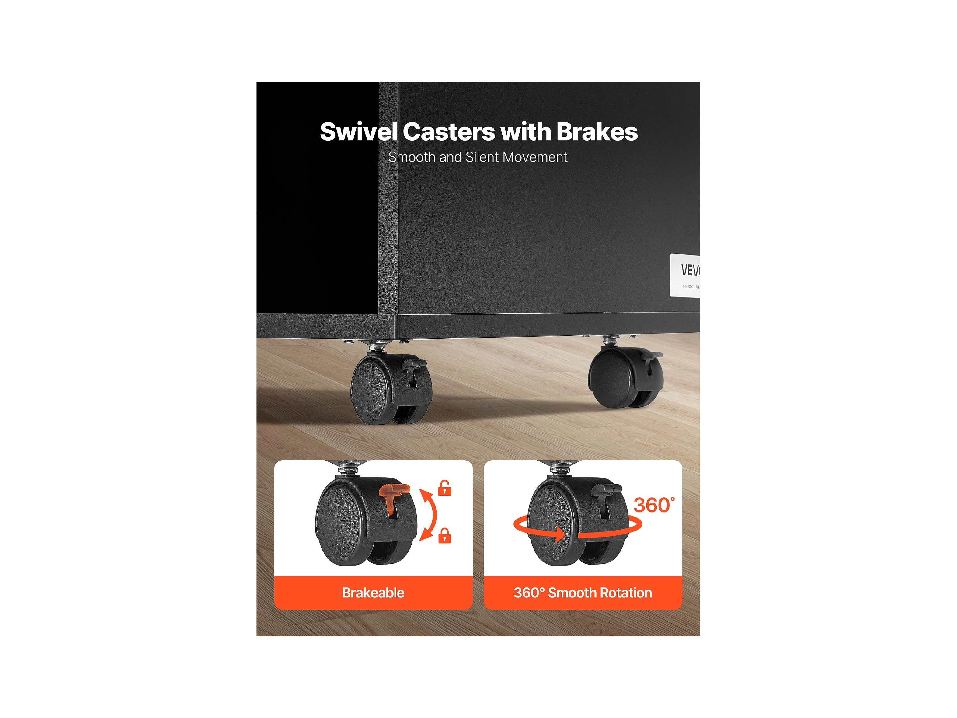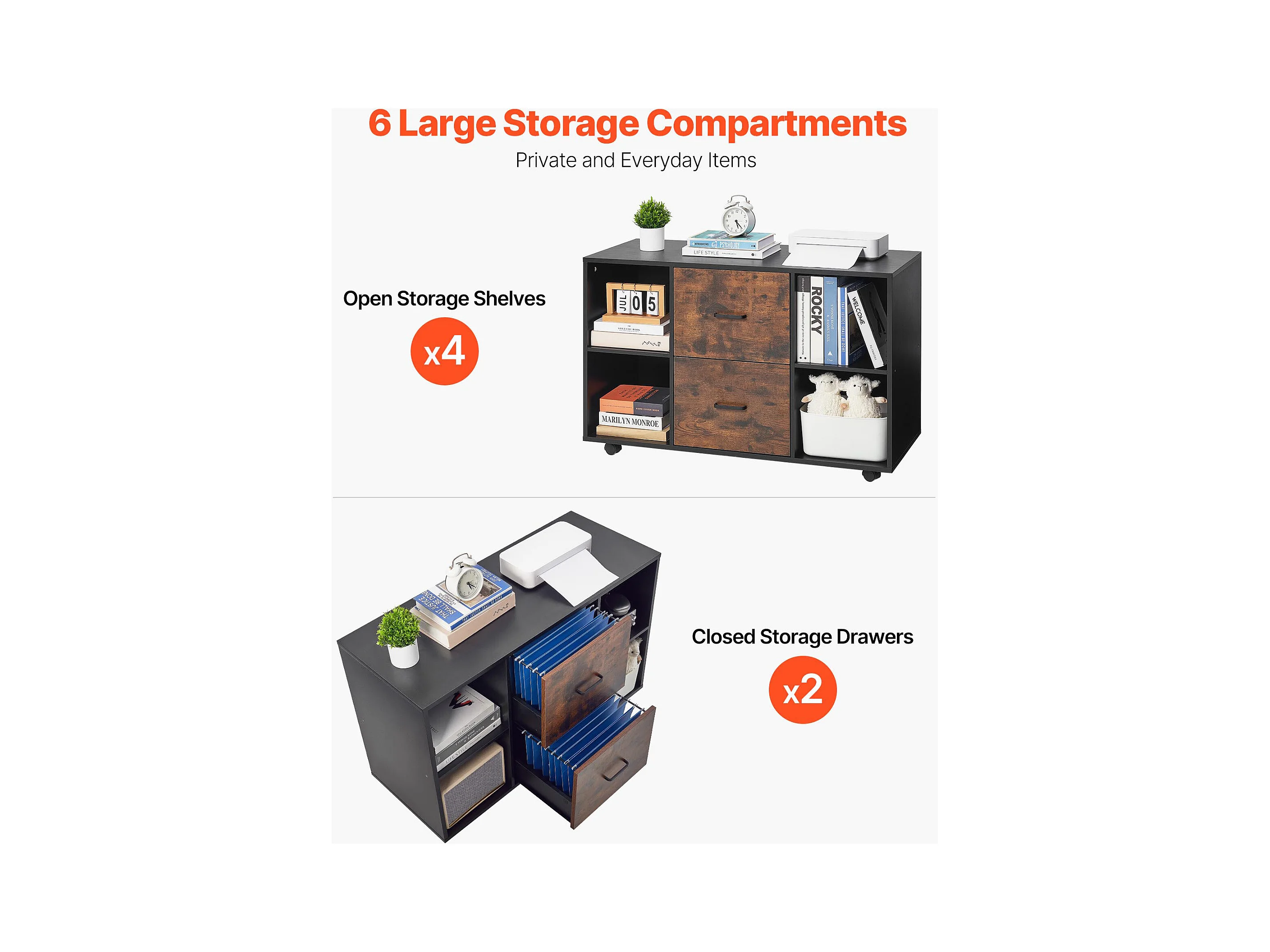 Classeur Dossier Mobile SucceBuy en Bois, Meuble de Rangement de Bureau à 2 Tiroirs avec Étagères Ouvertes et Roulettes Verrouillables, pour Bureau, Noir