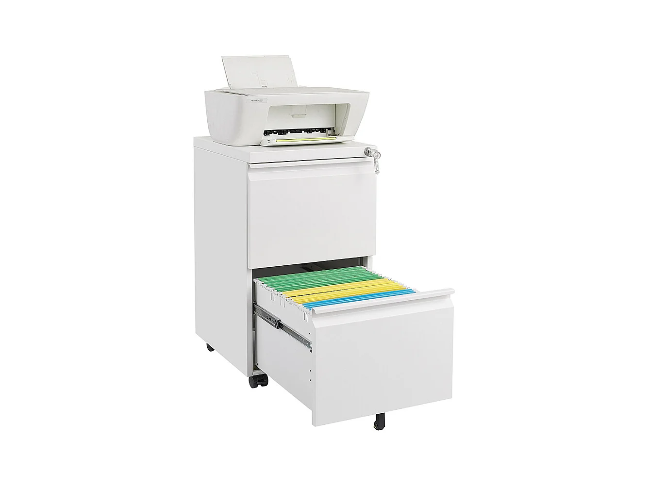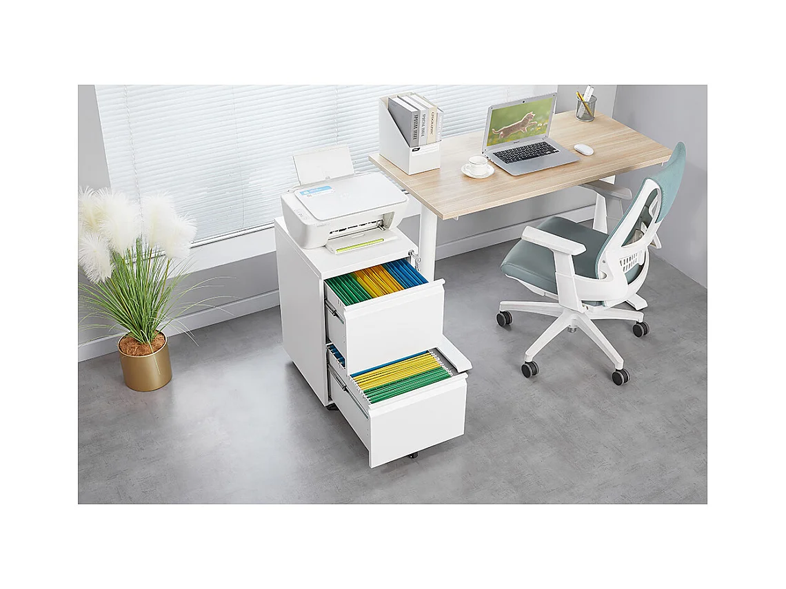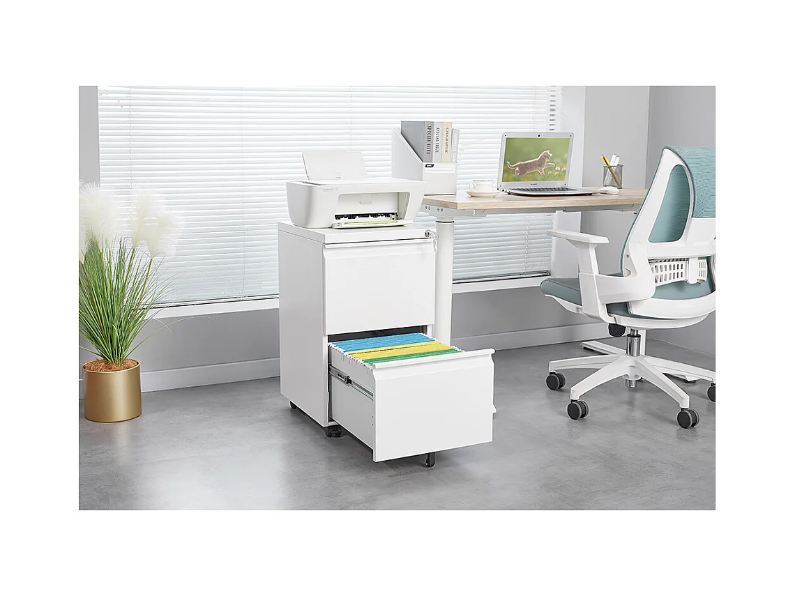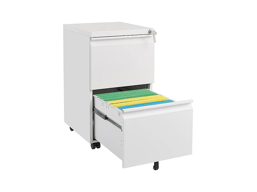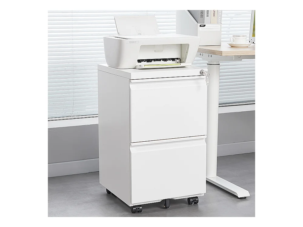 Classeur métallique mobile à 2 tiroirs avec serrure classeur de bureau en acier sous le bureau classeur de rangement blanc