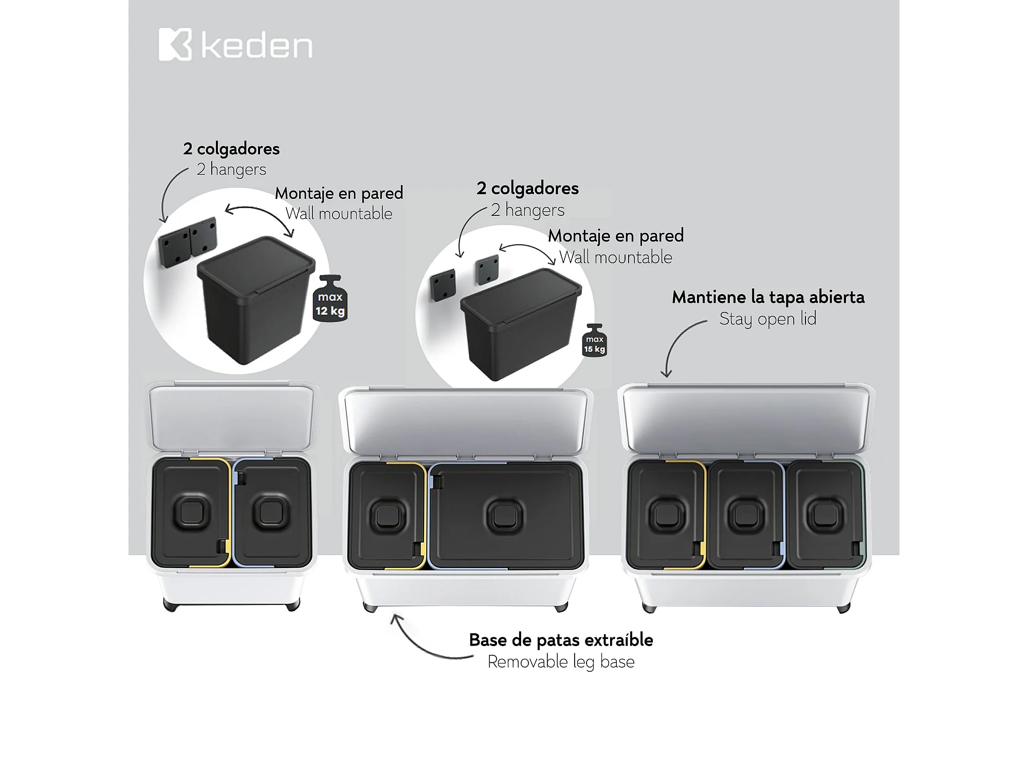 Système de recyclage blanc 2x23L Keden 56x39x41