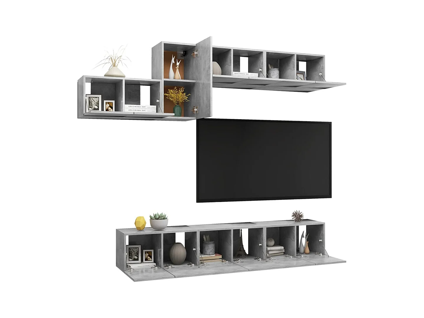 Claudia Isabel Ensemble de meubles TV 7 pcs Gris béton Bois d'ingénierie