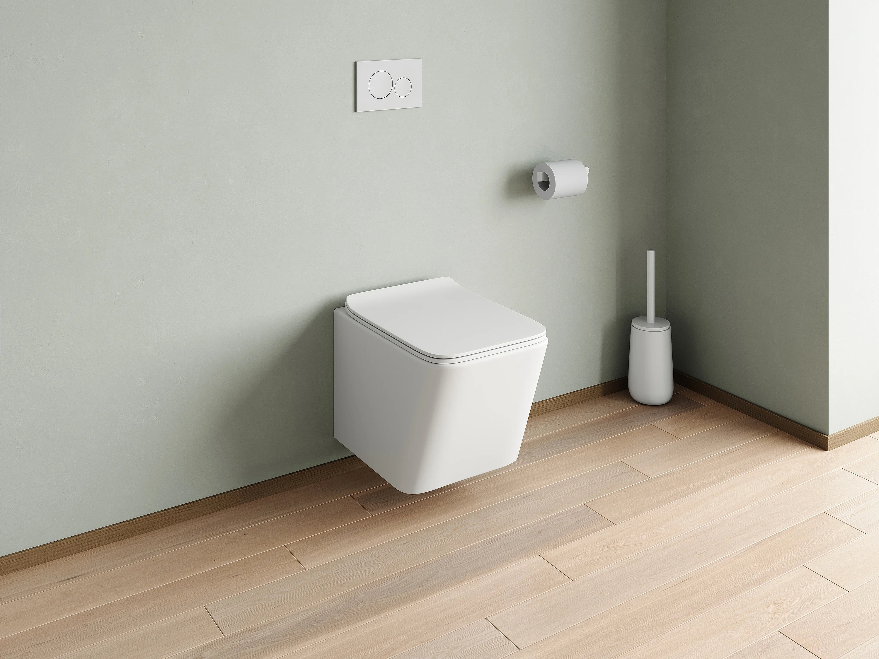 Pack WC suspendu blanc mat avec bâti-support et plaque de déclenchement blanche - CLEMONA