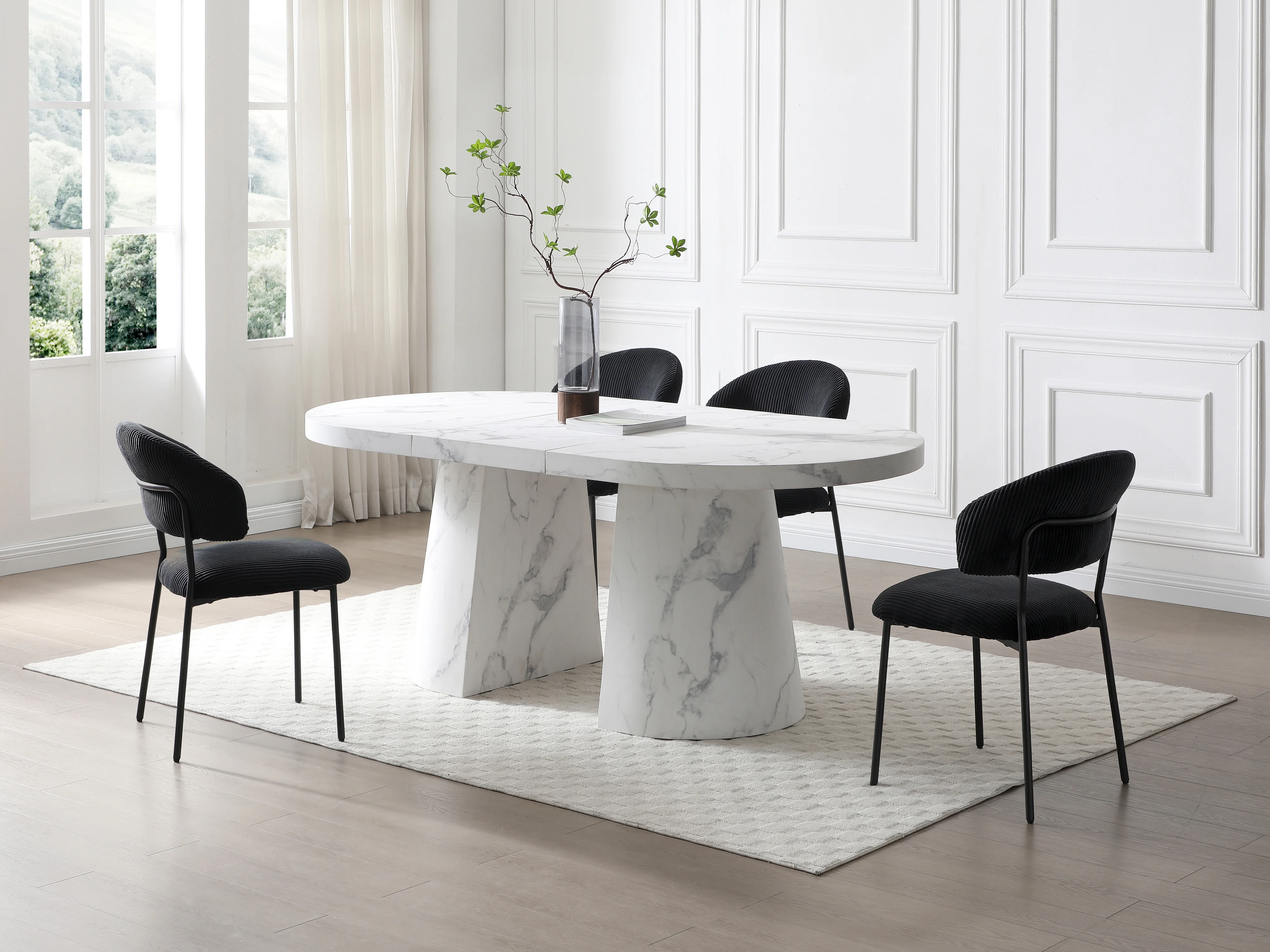 Table à manger extensible 6 à +12 personnes en MDF - Effet marbre blanc - CLOEVA
