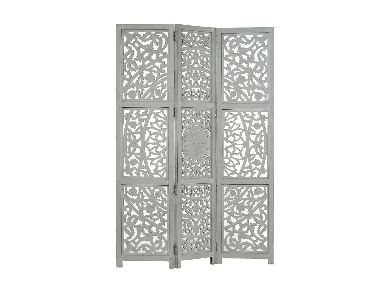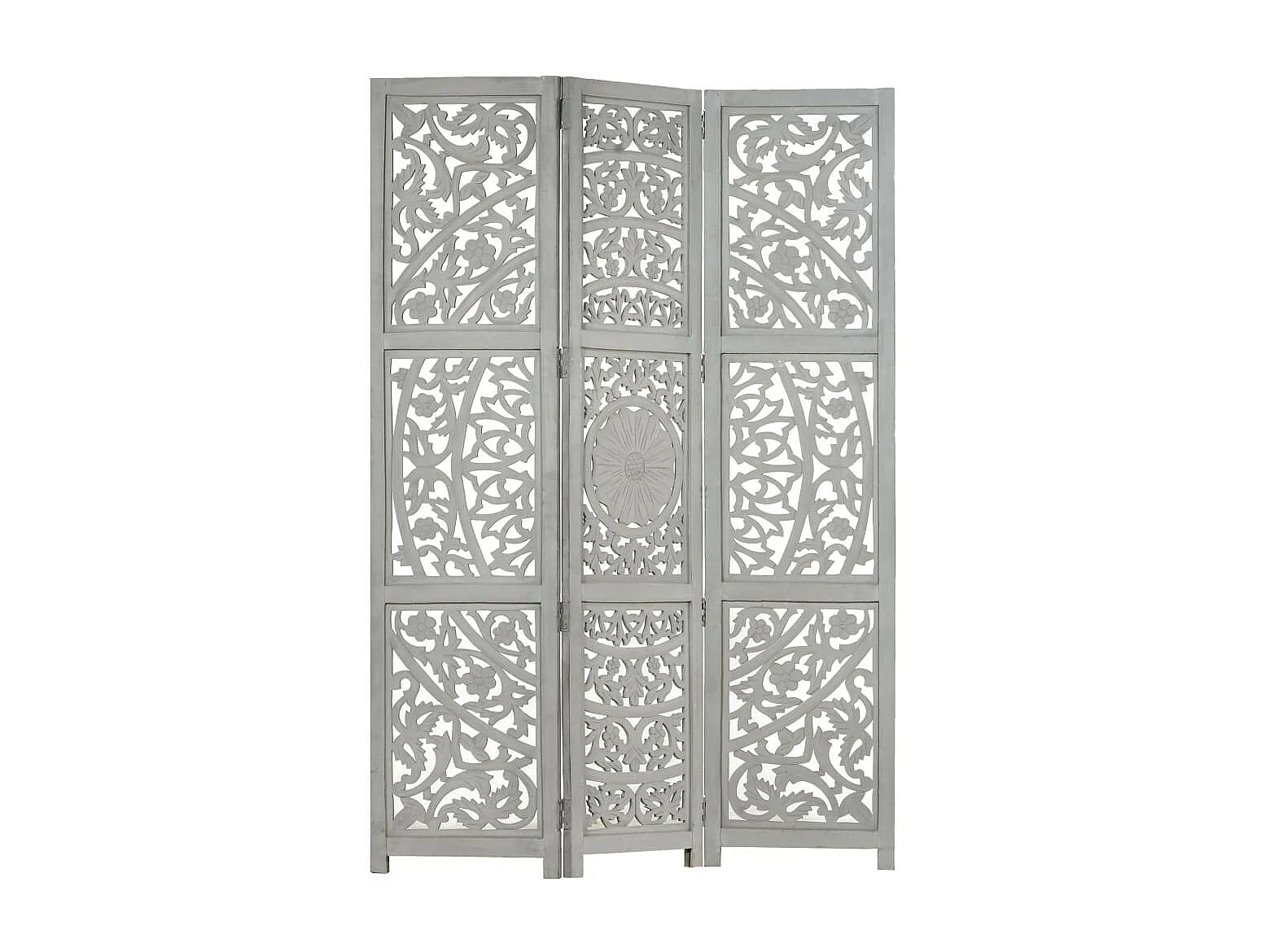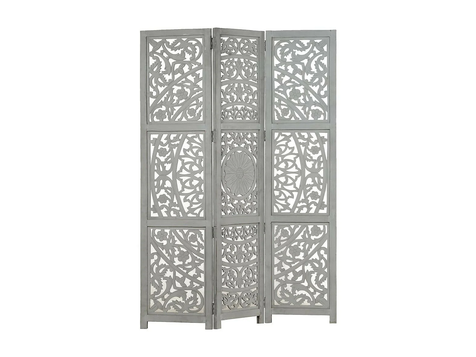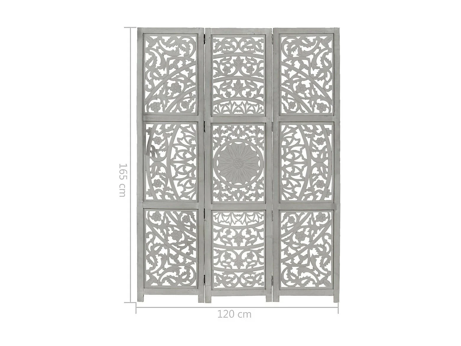 Cloison de séparation 3 panneaux Gris 120x165 Bois manguier 2