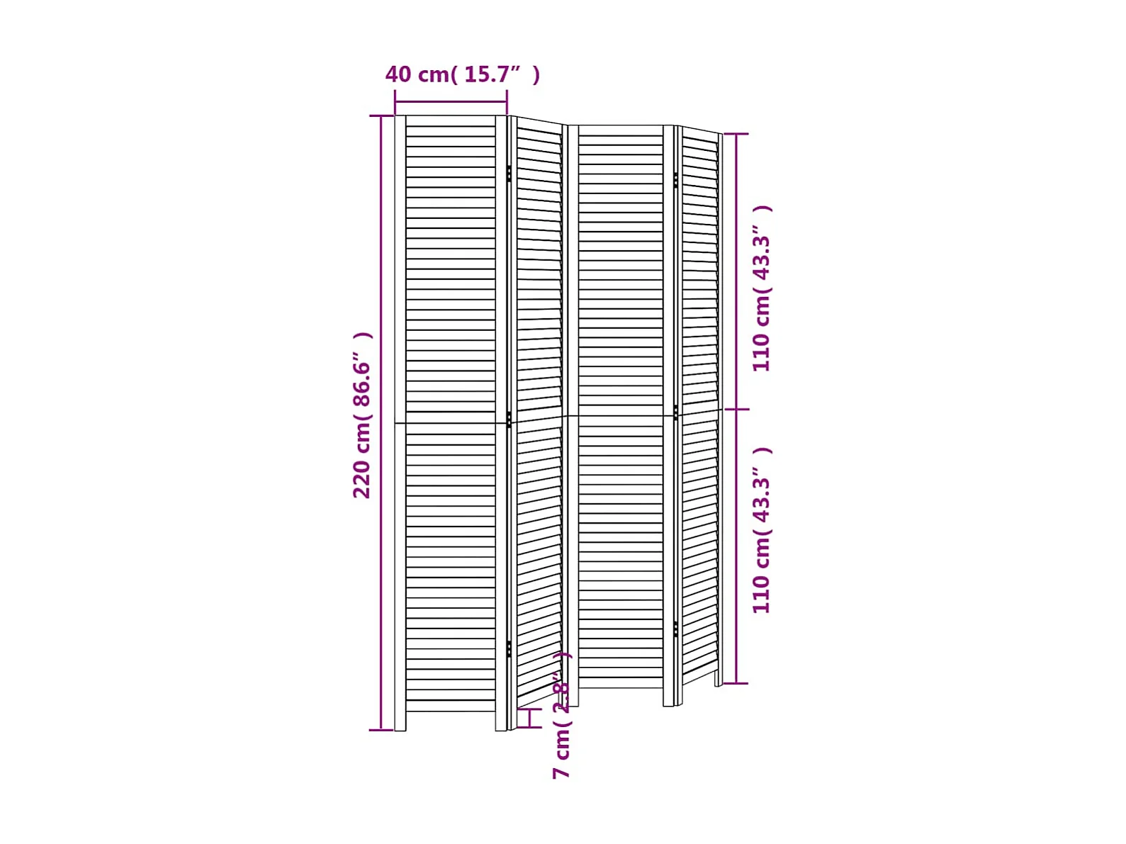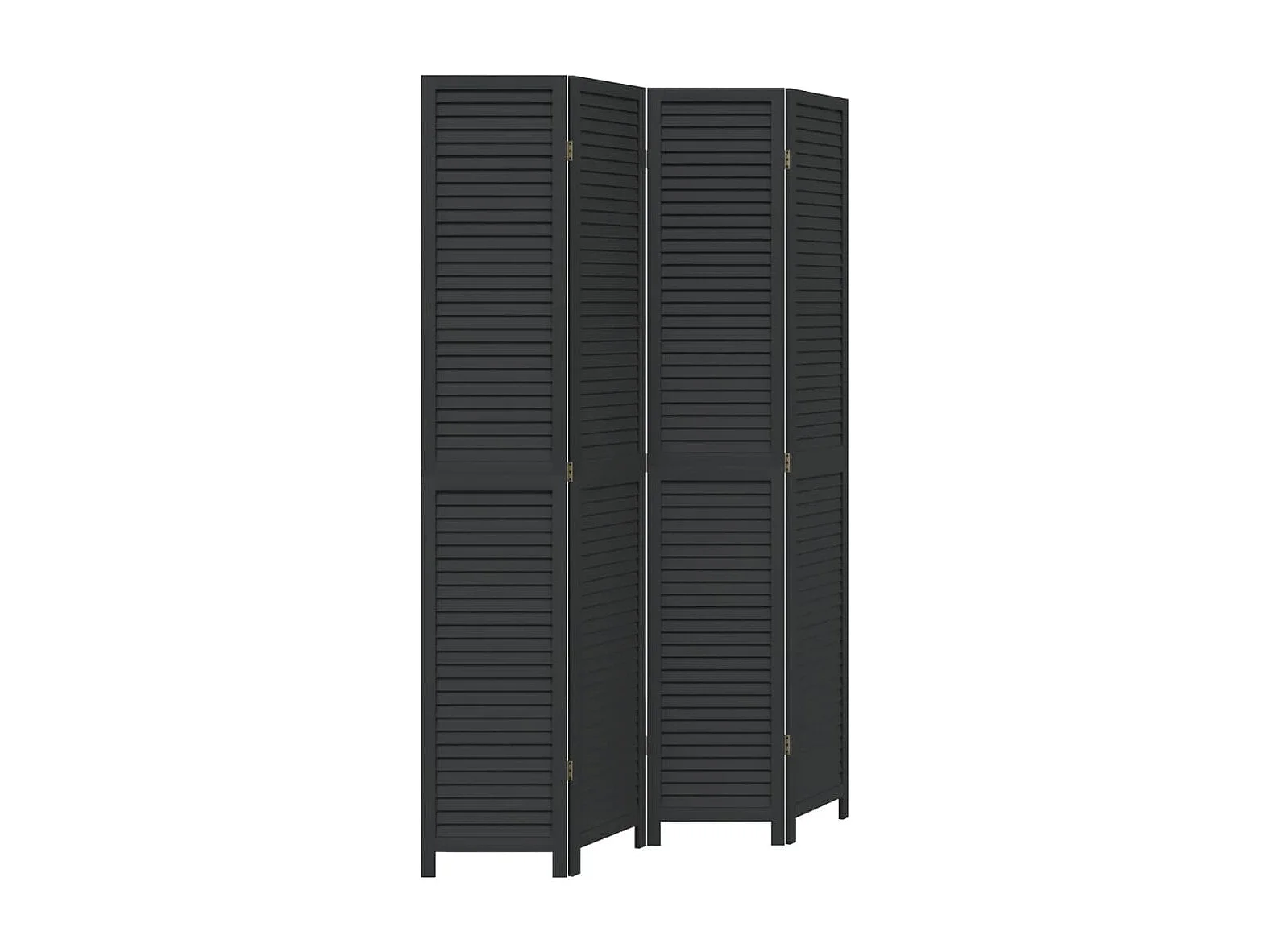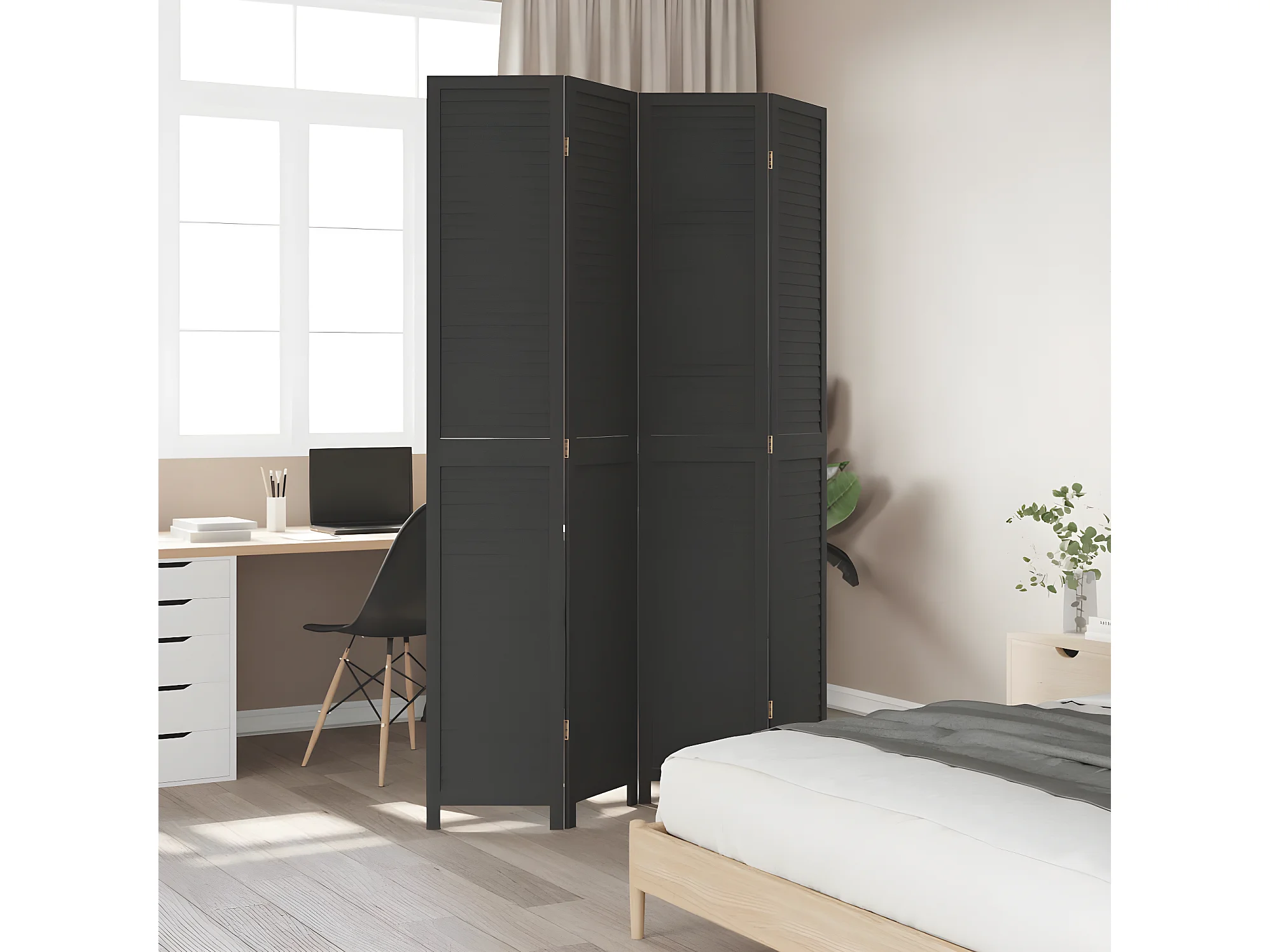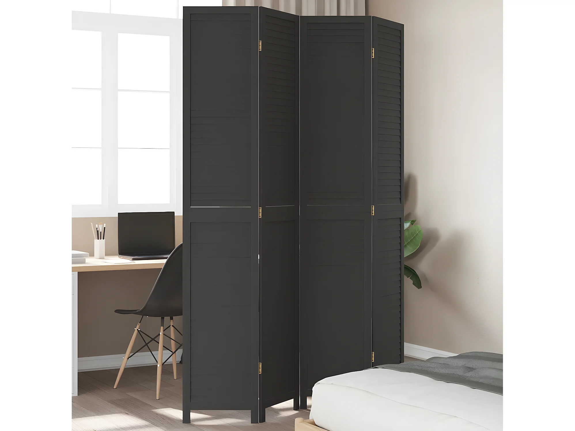 Cloison de séparation 4 panneaux noir bois de paulownia massif