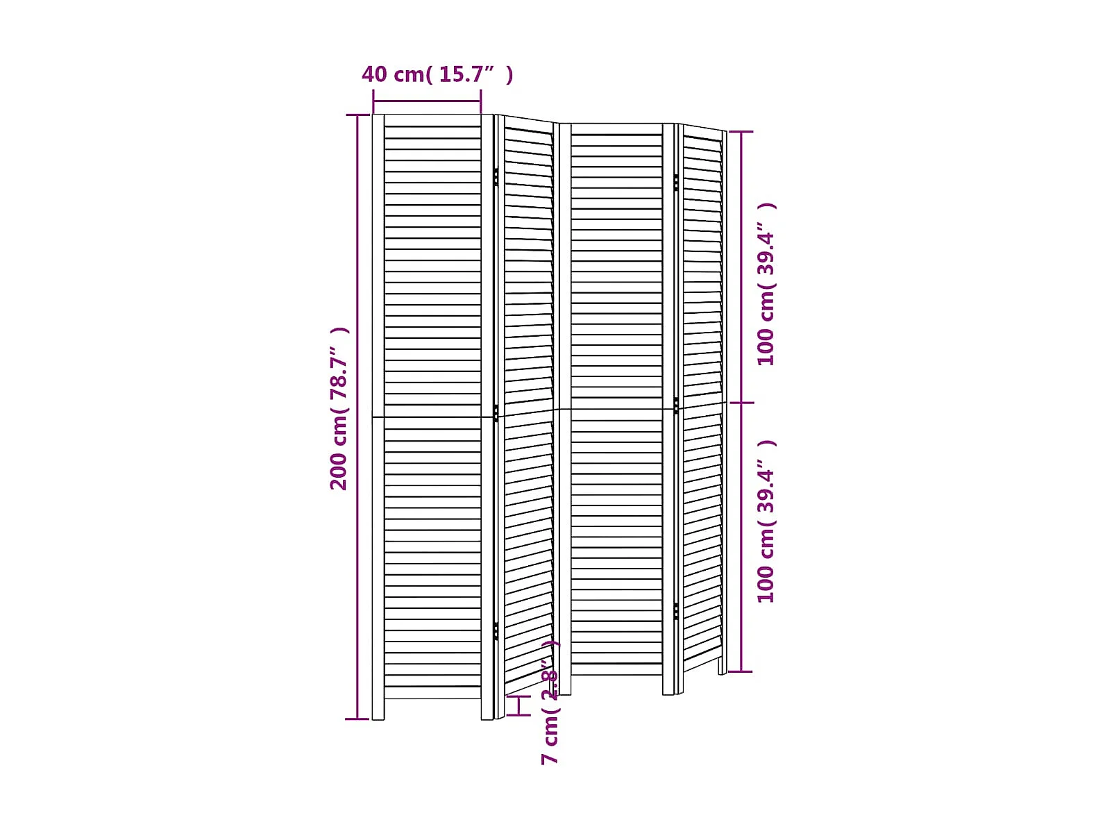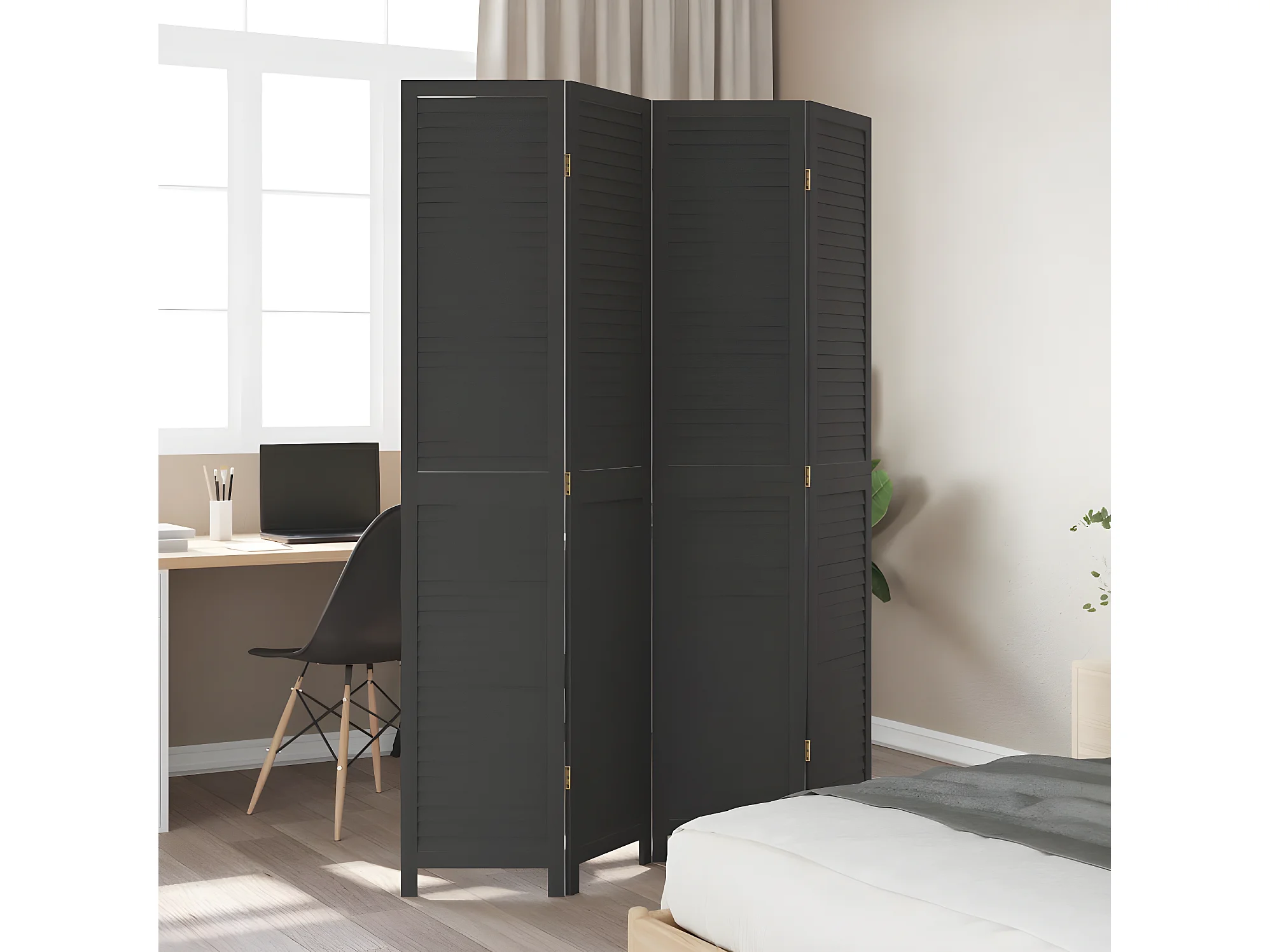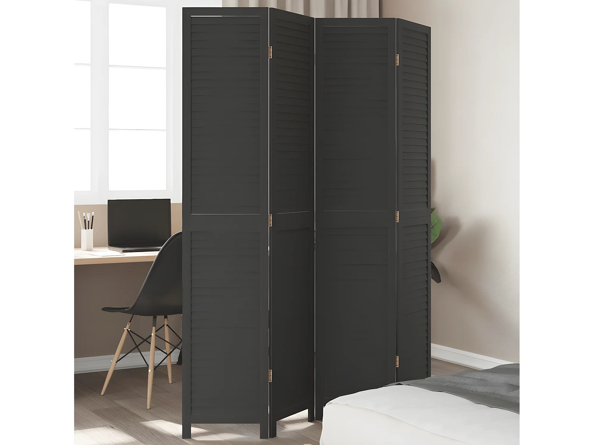 Cloison de séparation 4 panneaux noir bois de paulownia massif