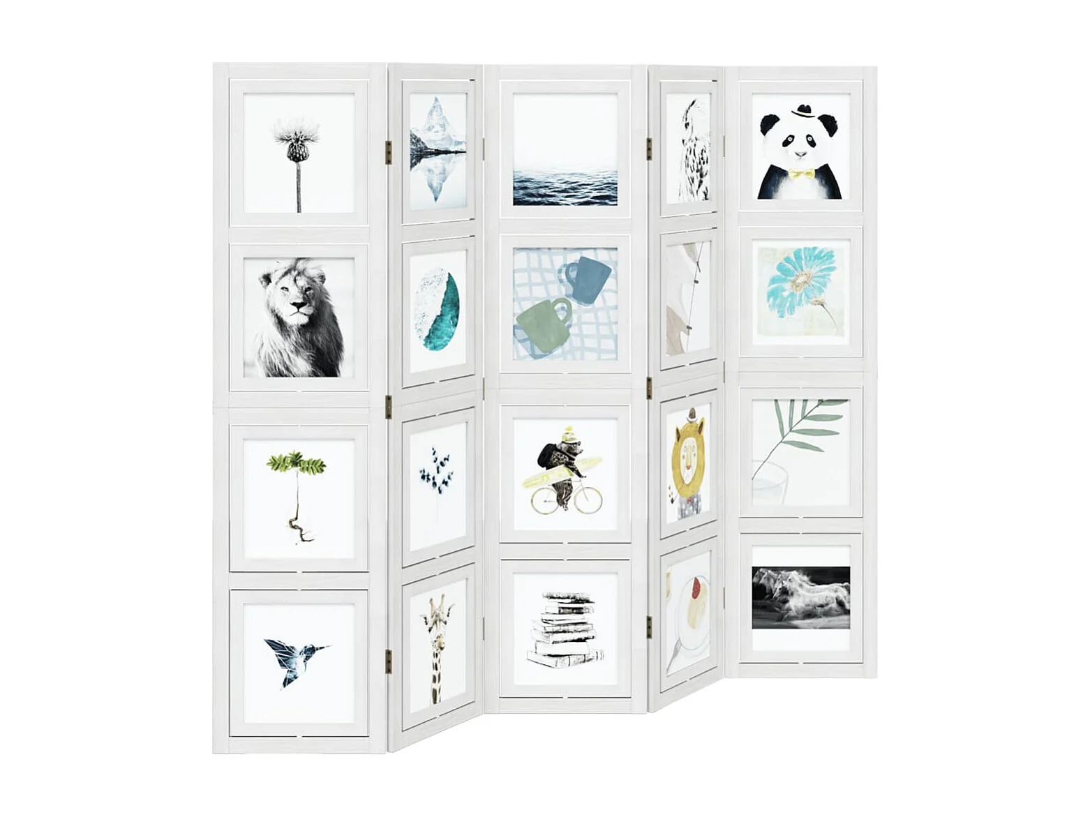 Cloison de séparation 5 panneaux blanc bois de paulownia massif