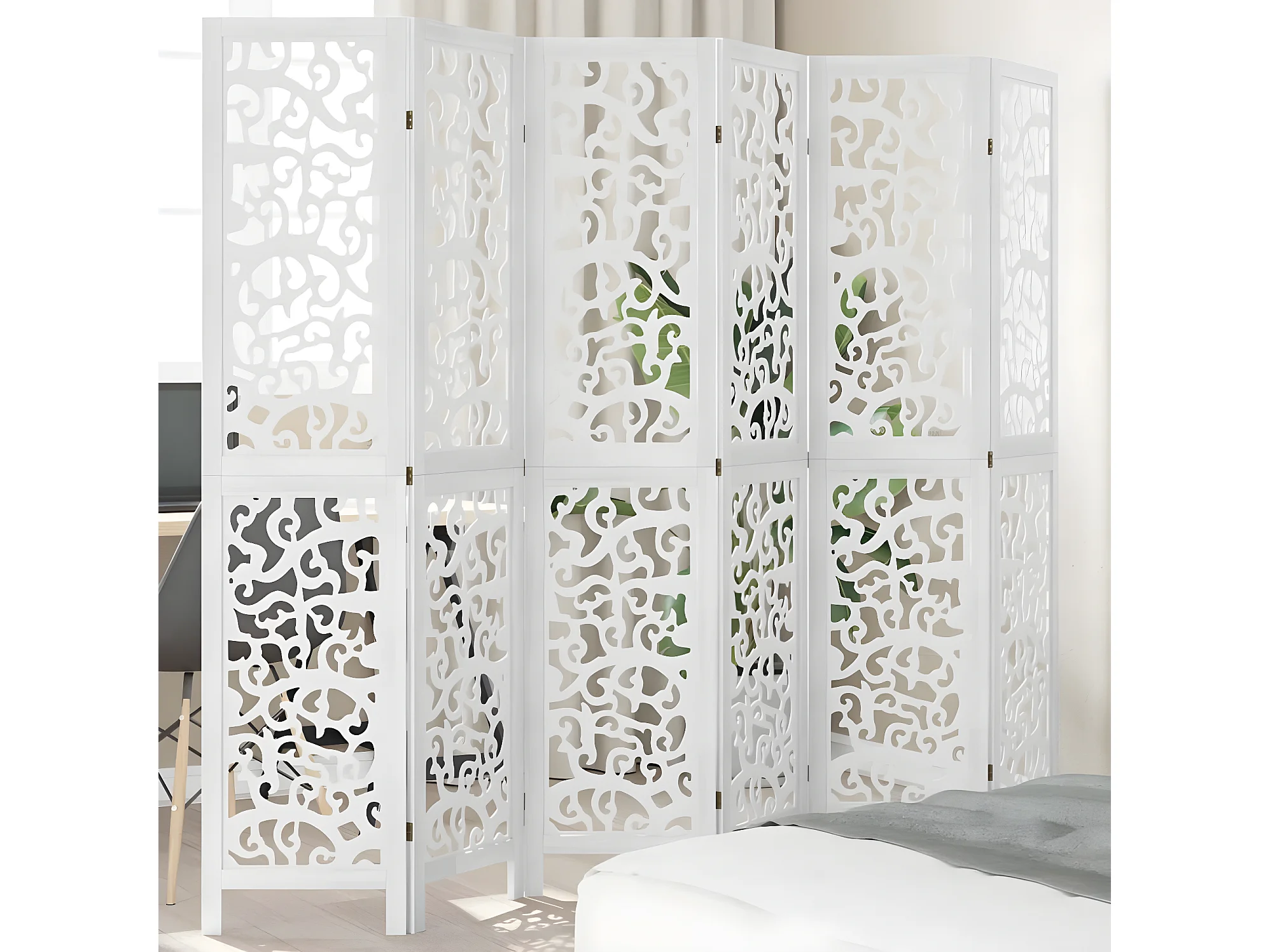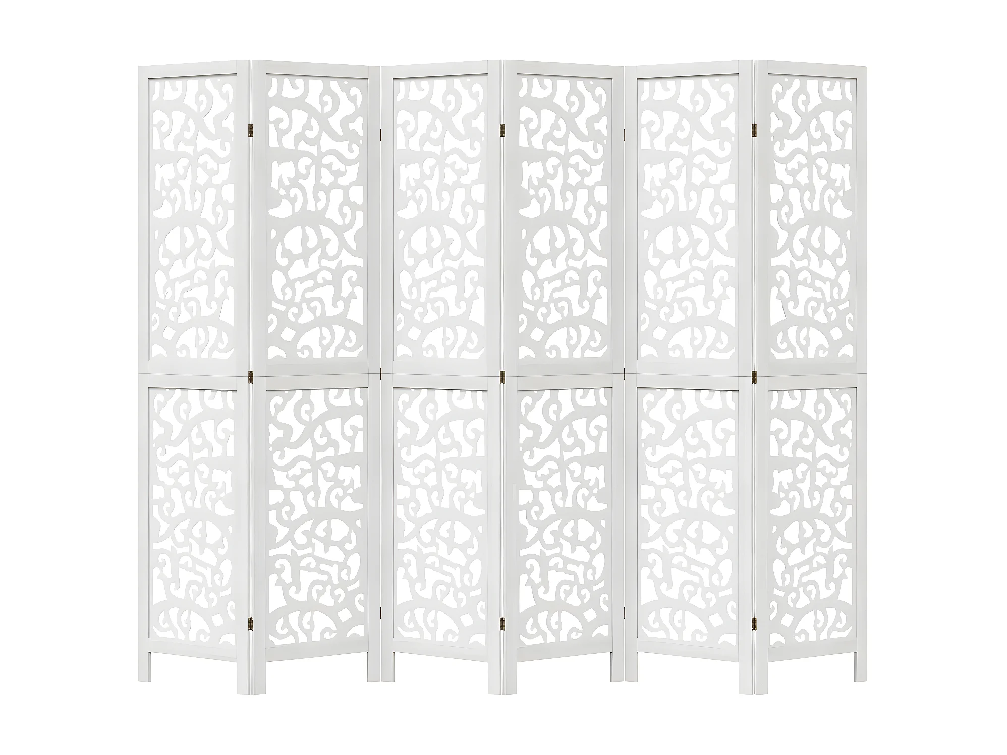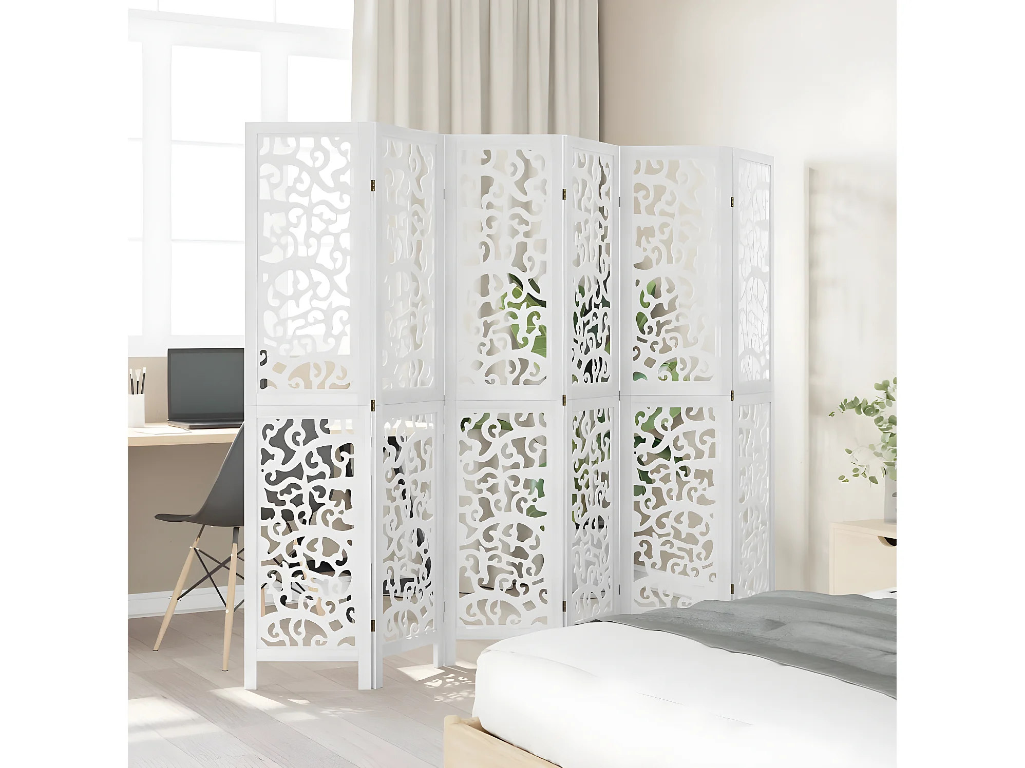 Cloison de séparation 6 panneaux blanc bois de paulownia massif