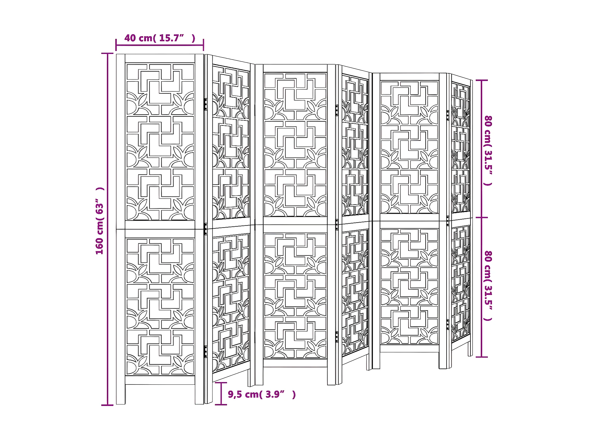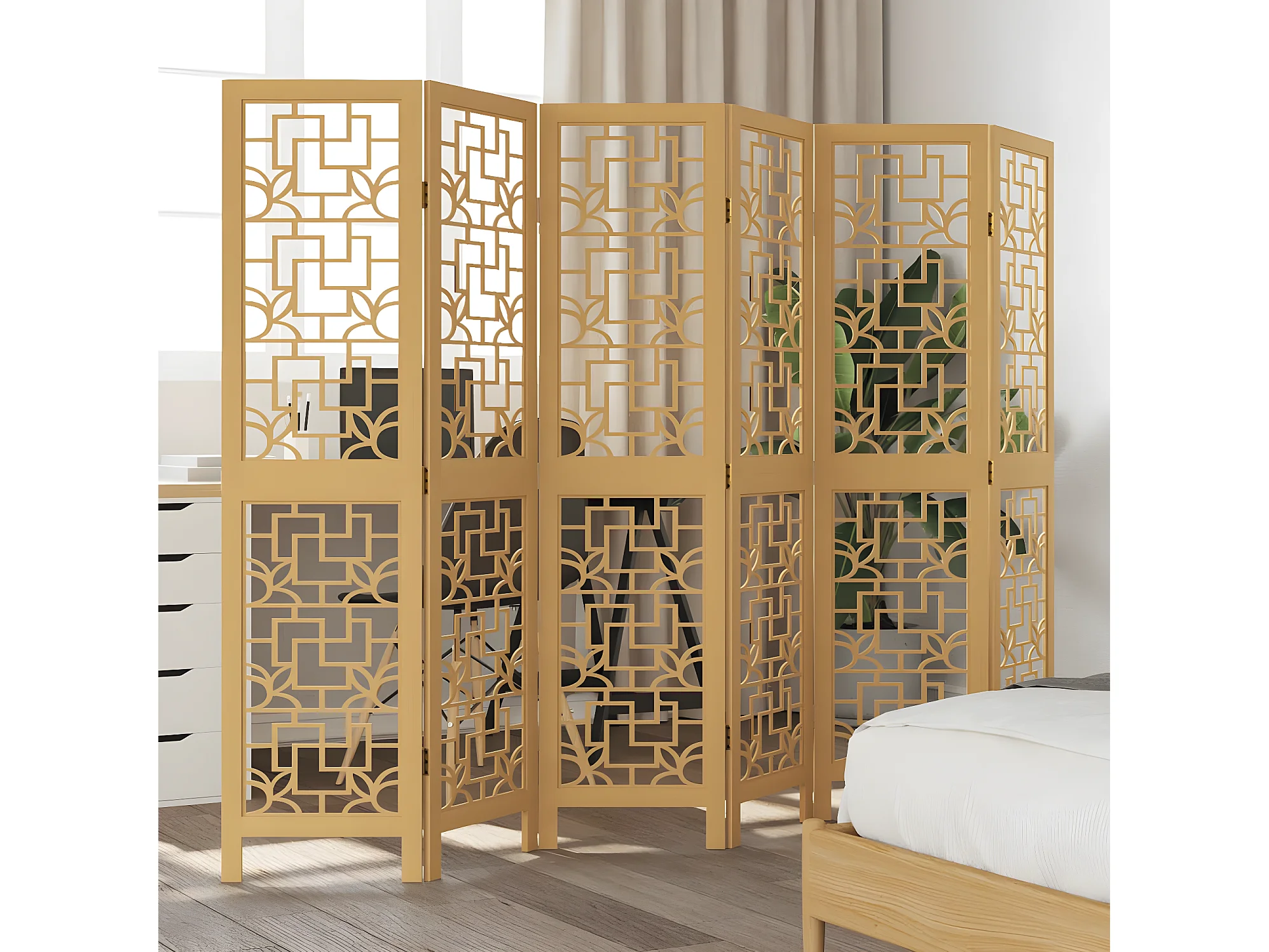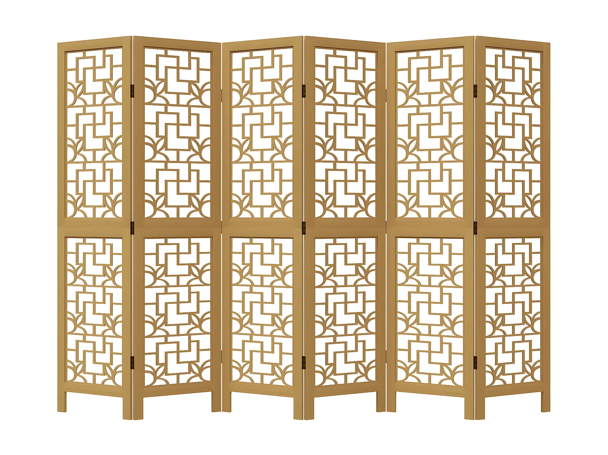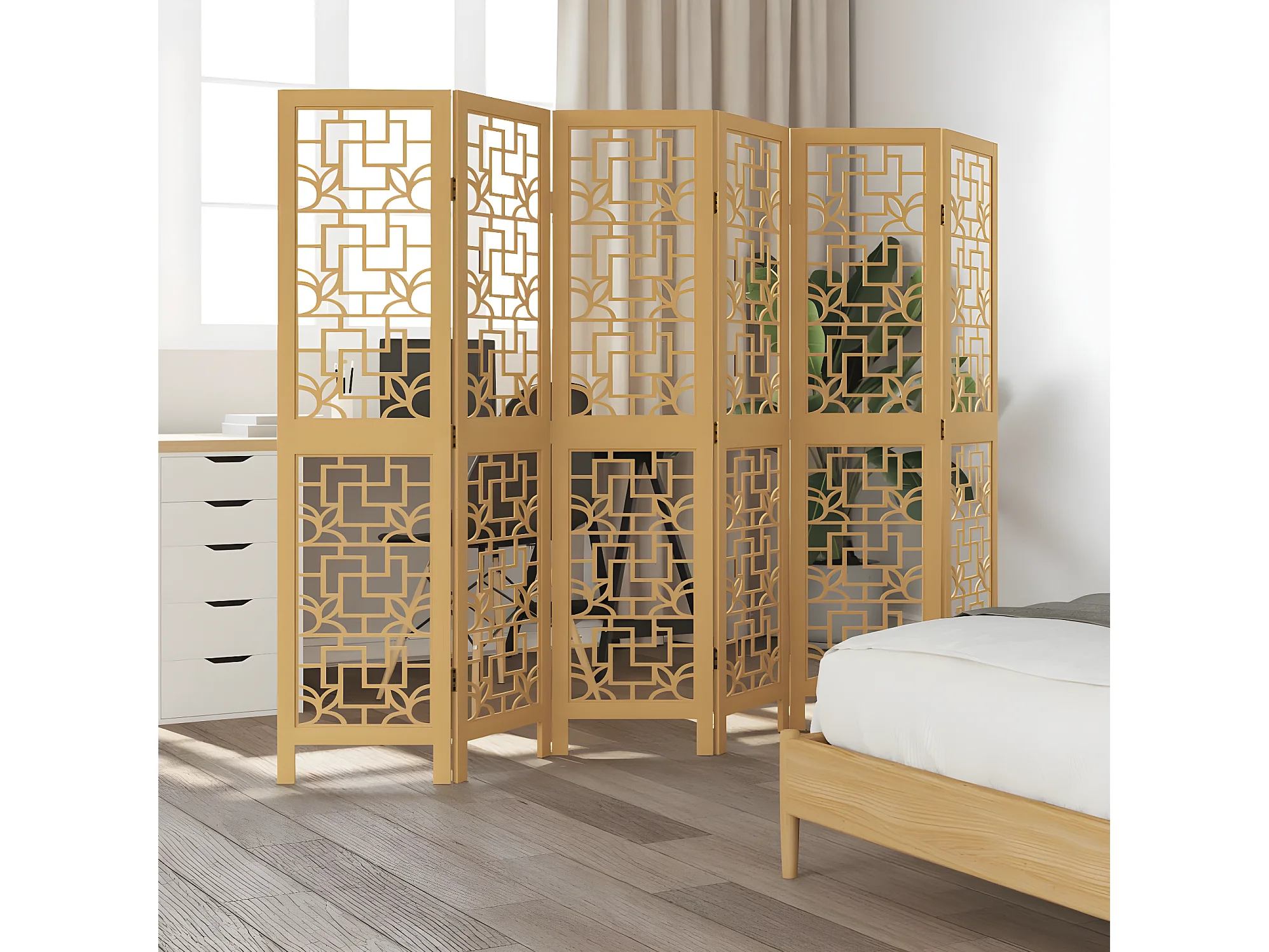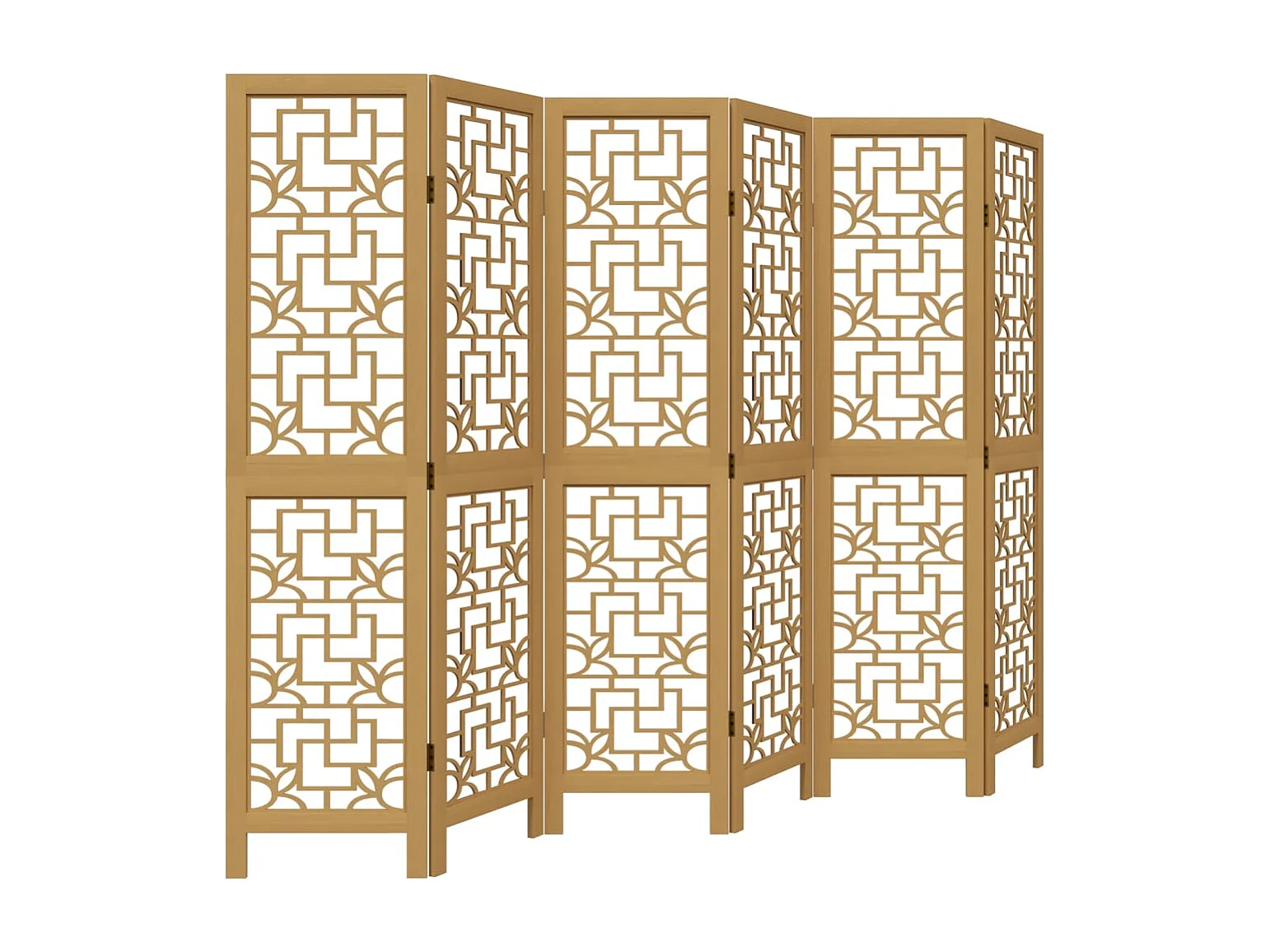 Cloison de séparation 6 panneaux marron bois paulownia massif