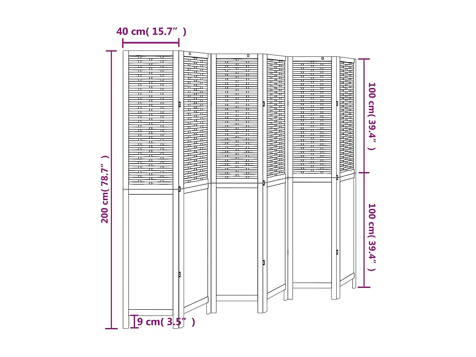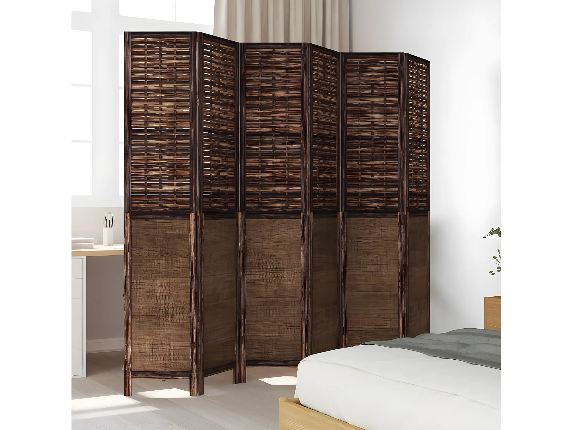 Cloison de séparation 6 panneaux marron foncé paulownia massif