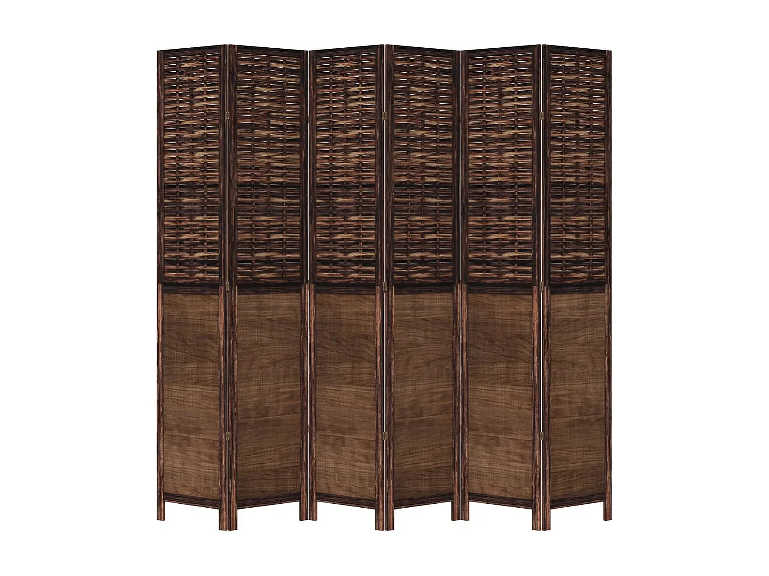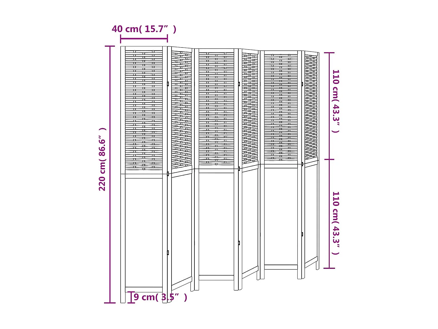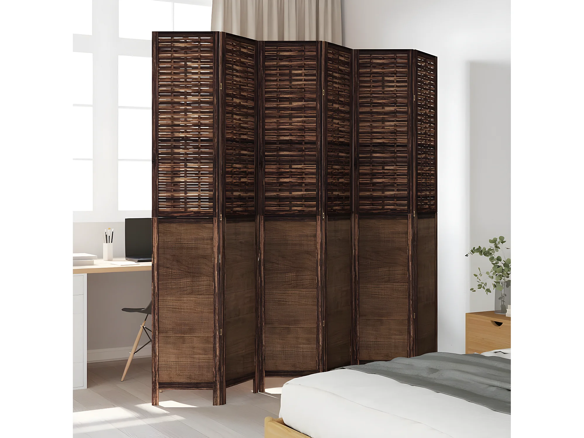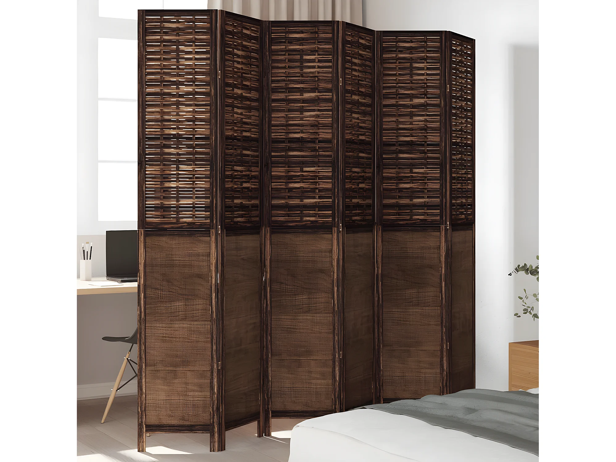 Cloison de séparation 6 panneaux marron foncé paulownia massif