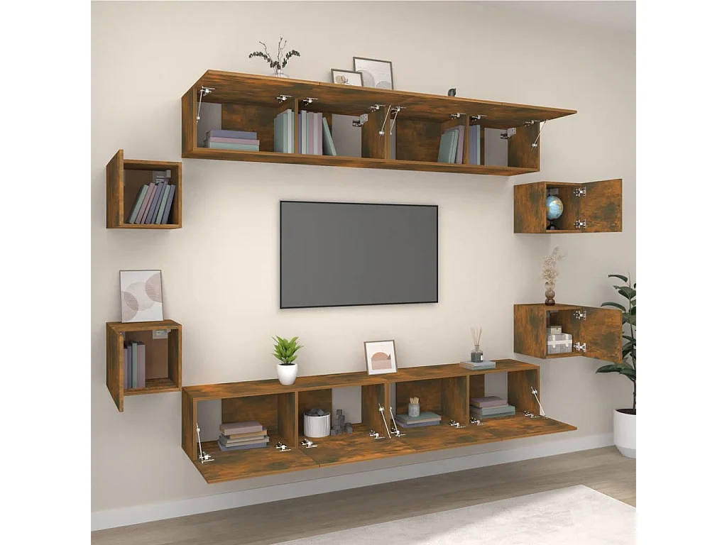 Clondalkin Ensemble de meubles TV 8 pcs Chêne fumé Bois d'ingénierie