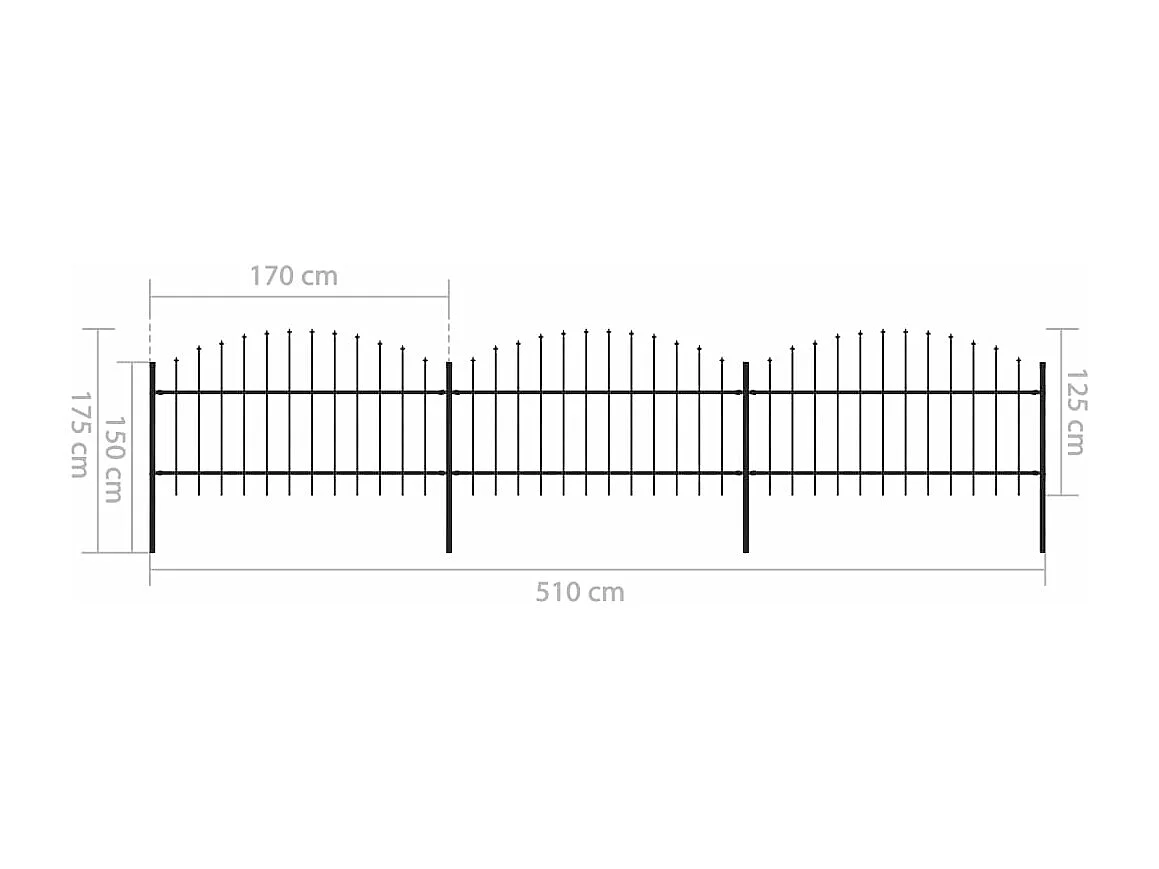 Clôture de jardin à dessus en lance Acier (1-1,25)x5,1 m Noir