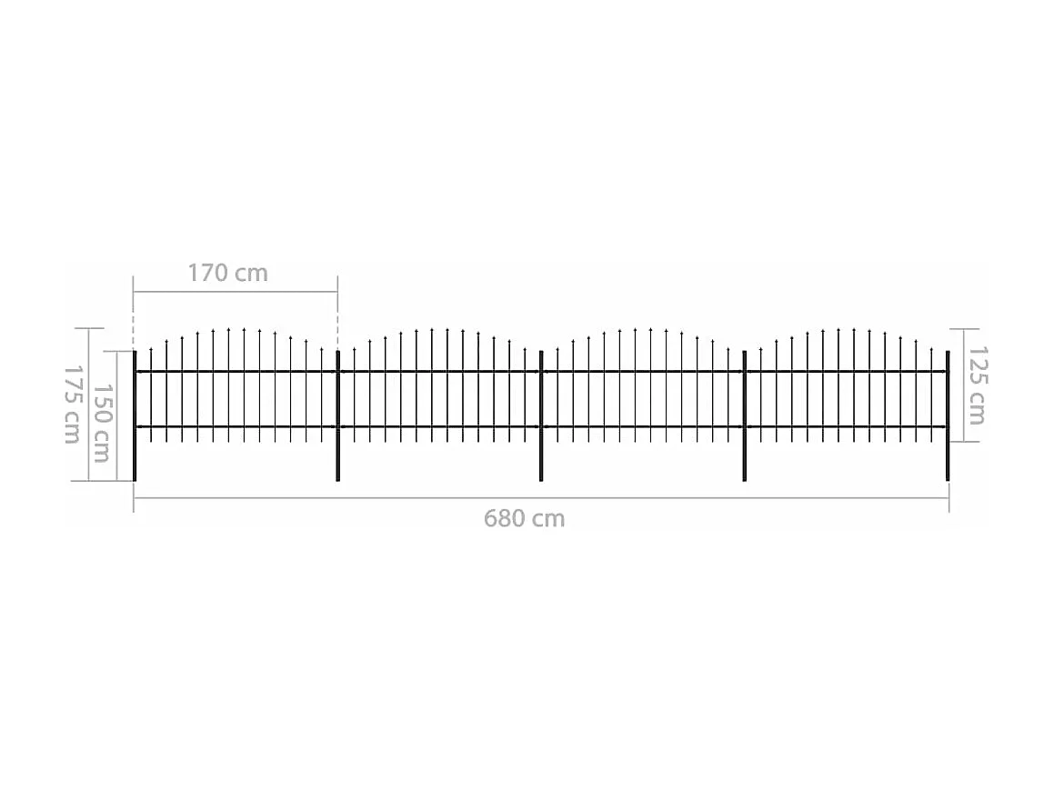Clôture de jardin à dessus en lance Acier (1-1,25)x6,8 m Noir