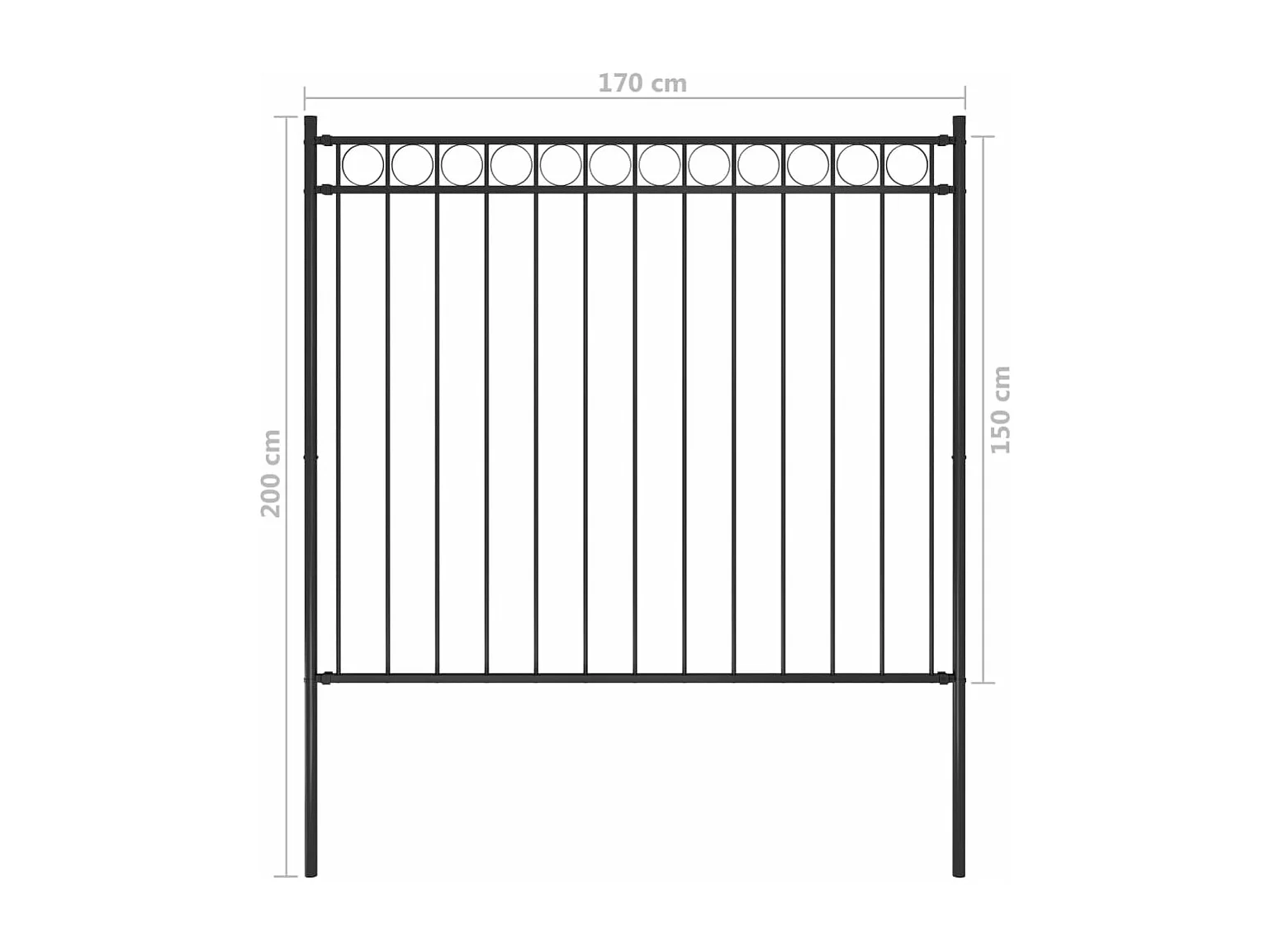 Clôture de jardin avec dessus en cerceau Acier 1,7 m Noir 5