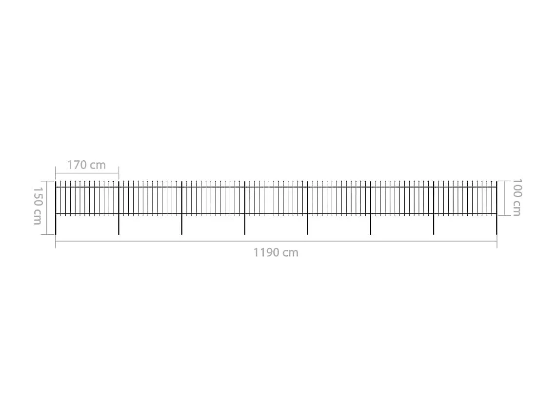 Clôture de jardin avec dessus en lance Acier 11,9 x 1 m Noir