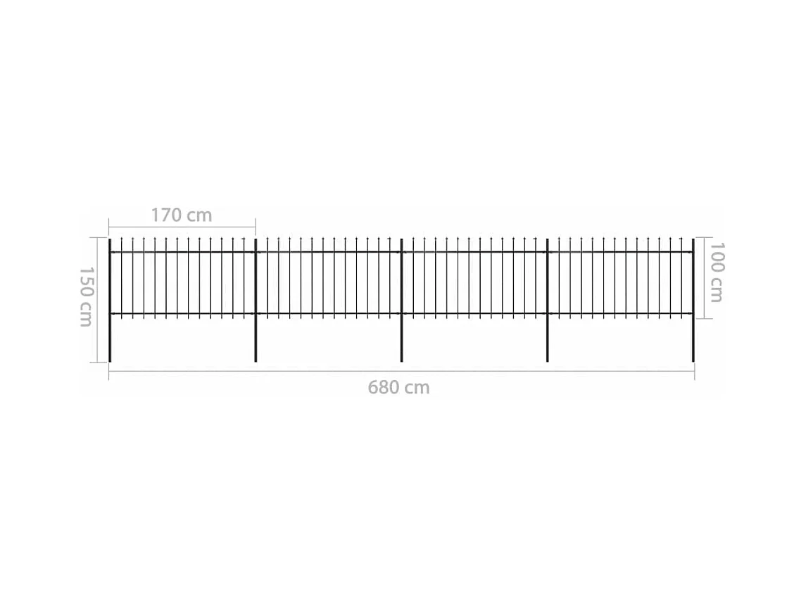 Clôture de jardin avec dessus en lance Acier 6,8 x 1 m Noir