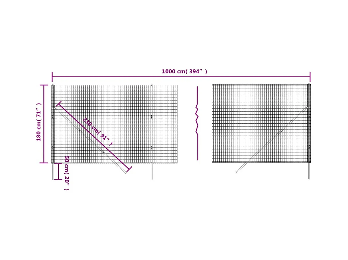 Clôture en treillis métallique et ancrage anthracite 2,2x10 m FR486195