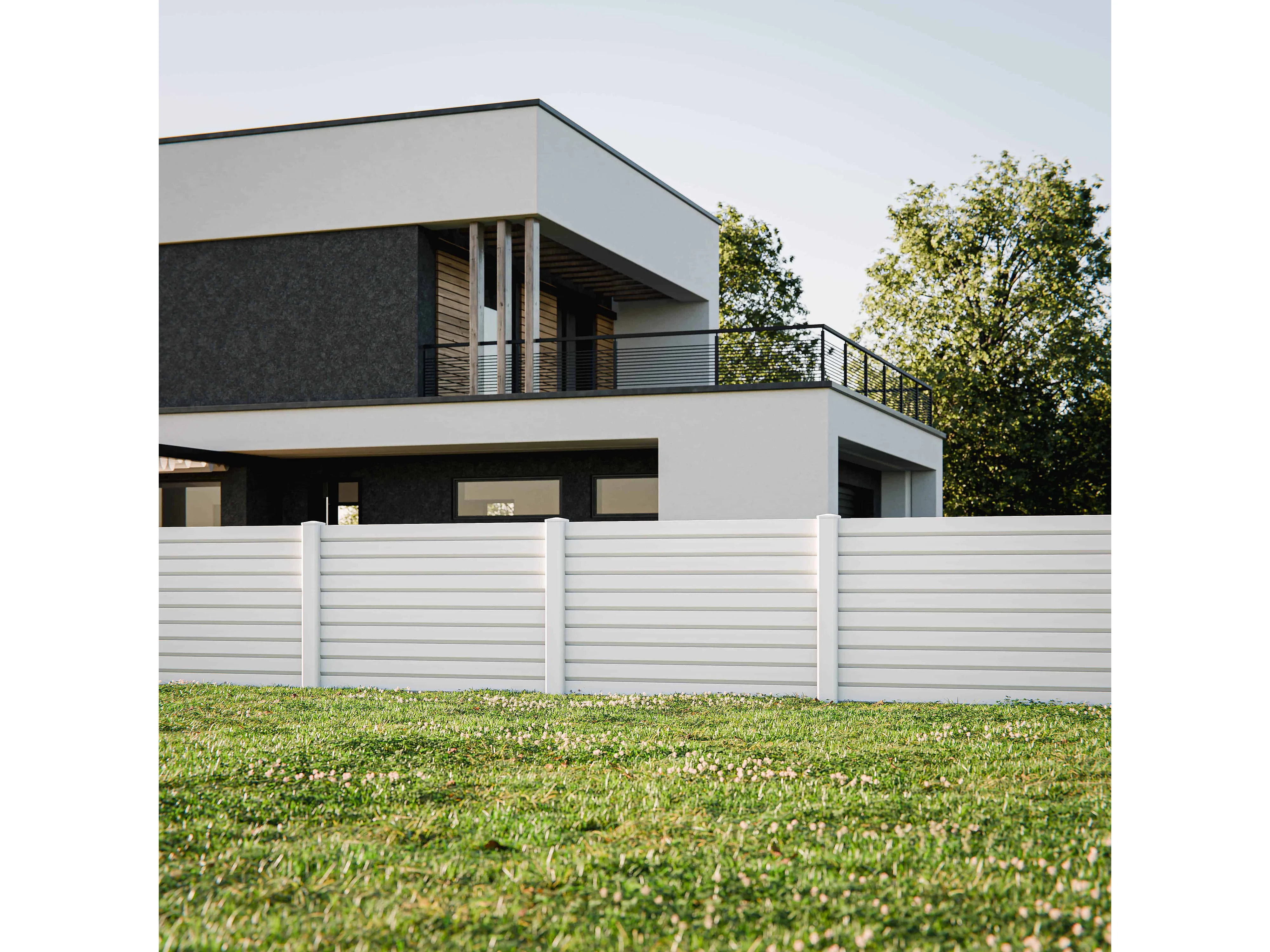 Kit Clôture PRO PVC Blanc H. 120 cm x L. 5.70 m - 10 Lisses claire-voie