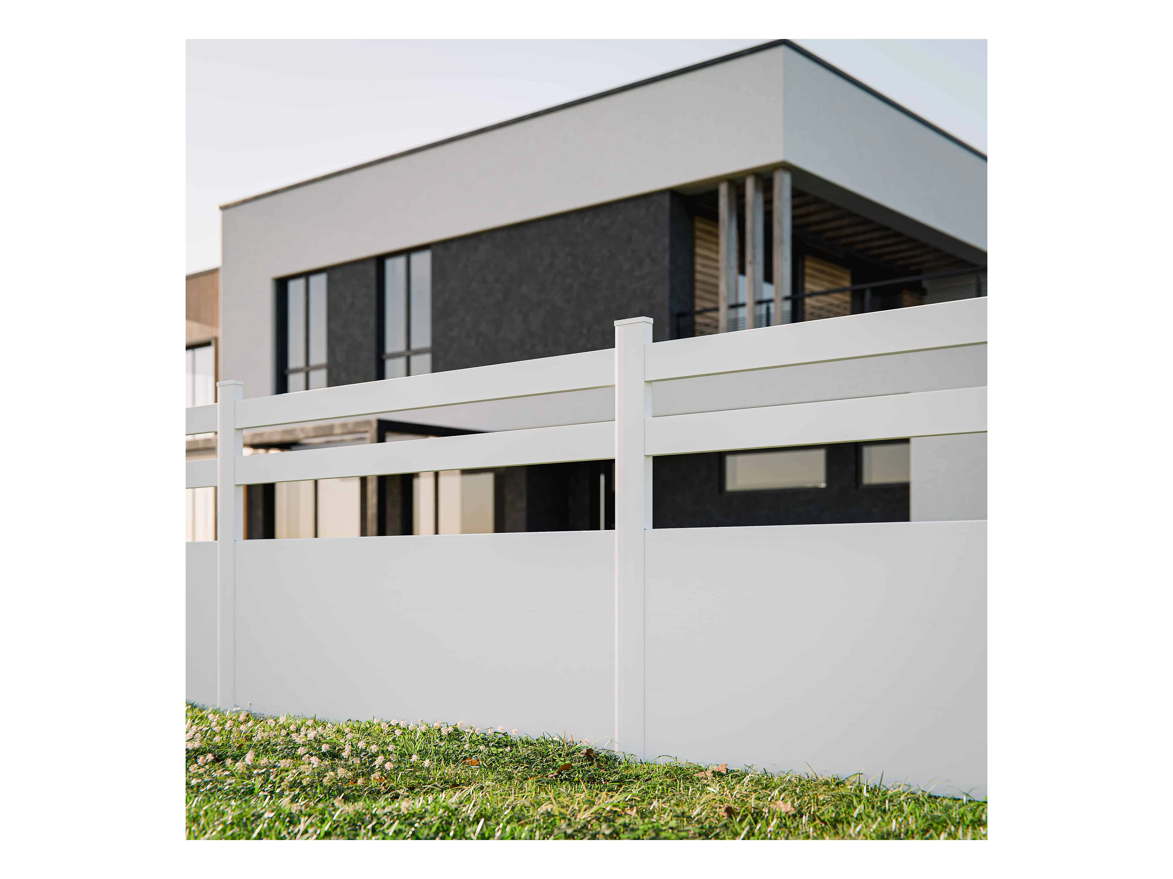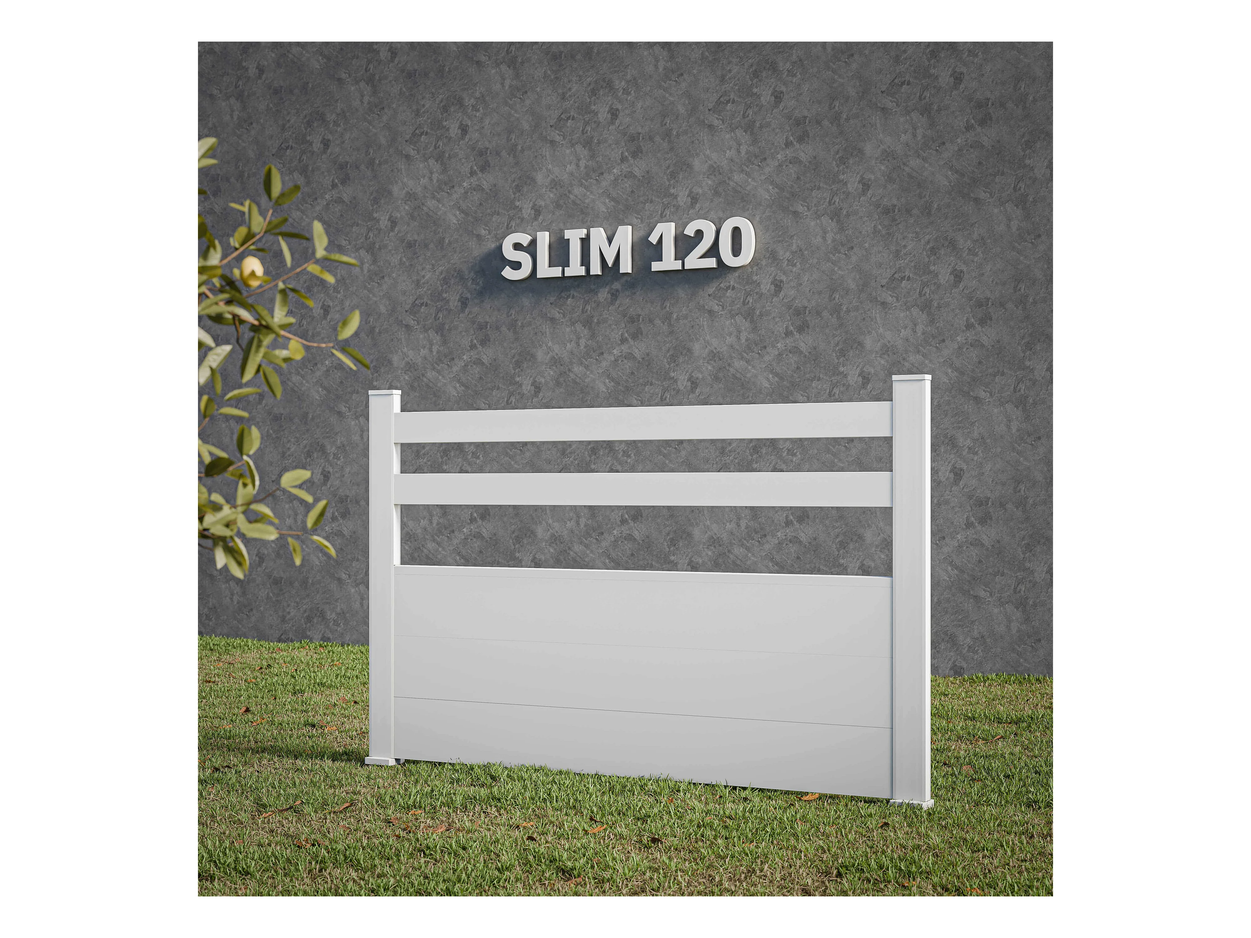 Kit Clôture SLIM PVC Blanc H. 120 cm x L. 11.10 m - 2 Lisses + 3 Soubassements