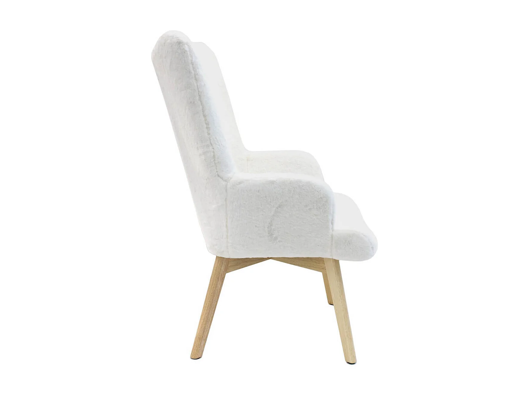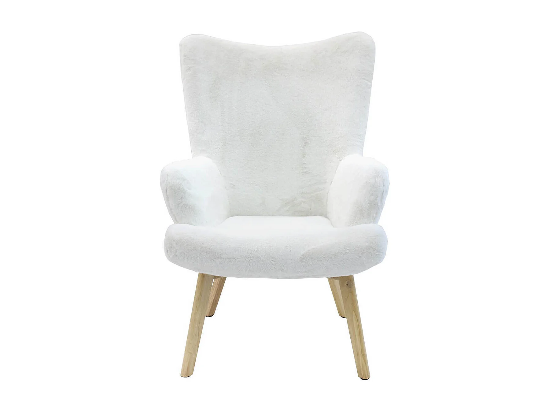 COCOON - Fauteuil Blanc Imitation Fourrure Pieds Bois