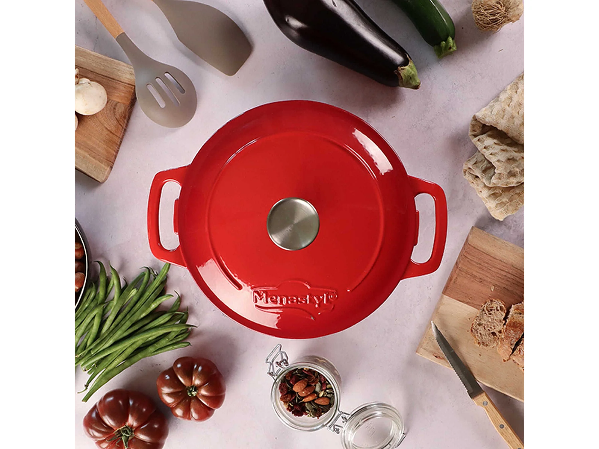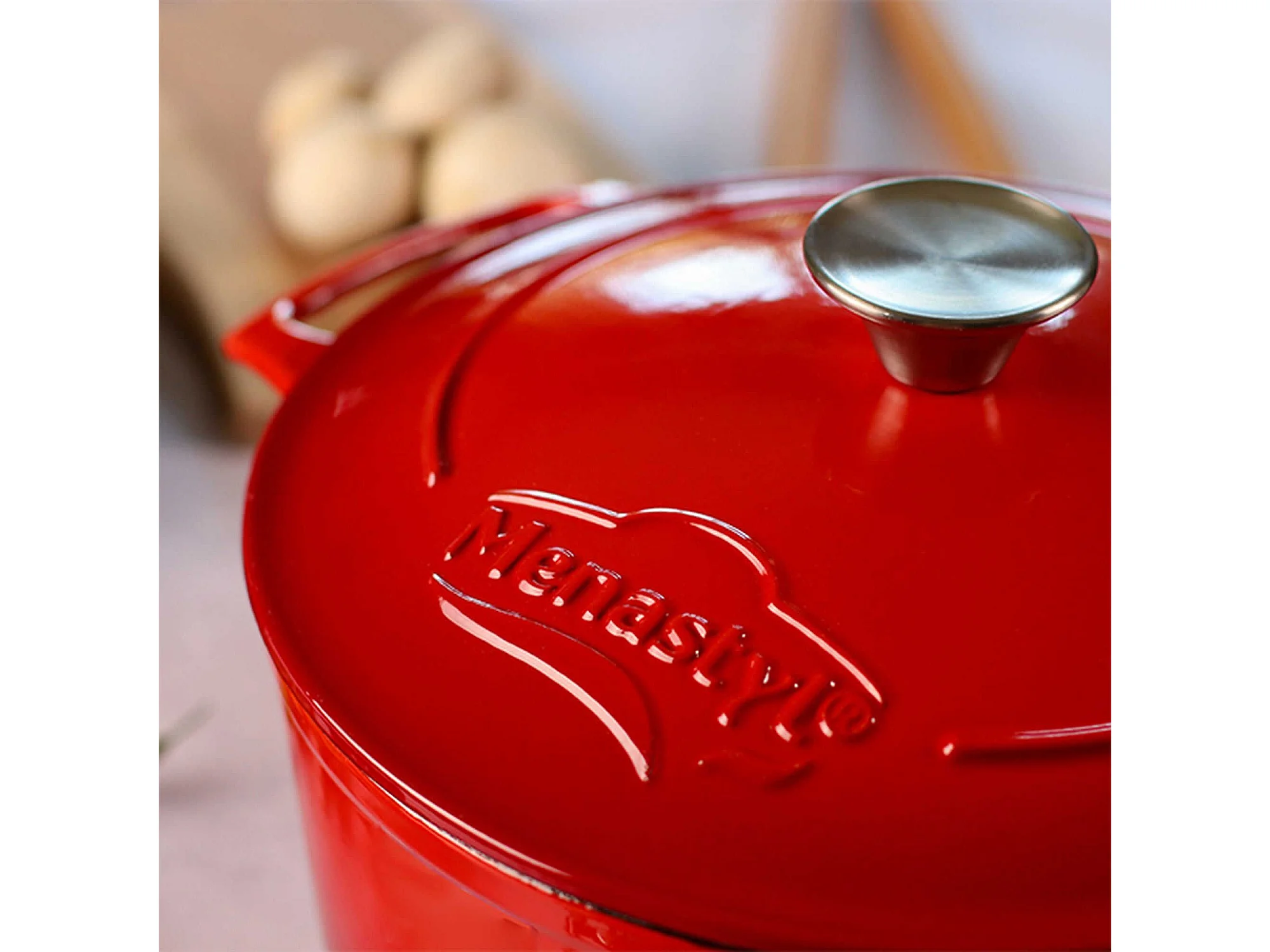 Menastyl - Cocotte Colette Ronde 7l 29cm En Fonte Emaille Rouge