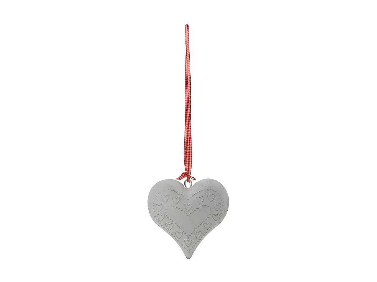Coeur en métal laqué blanc lacet vichy Lot de 4