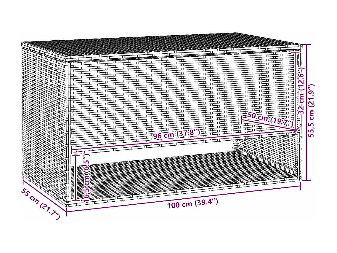 Coffre à coussins d'extérieur gris 100x55x55,5cm résine tressée