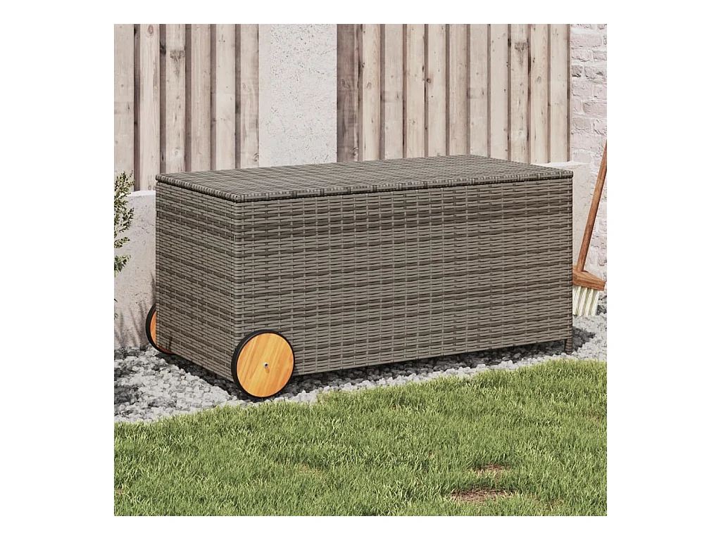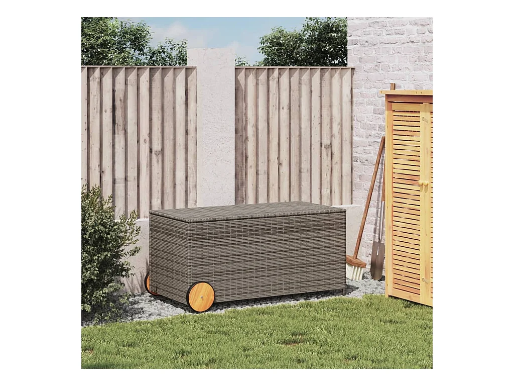 Boîte de rangement de jardin et roues gris 190L résine tressée
