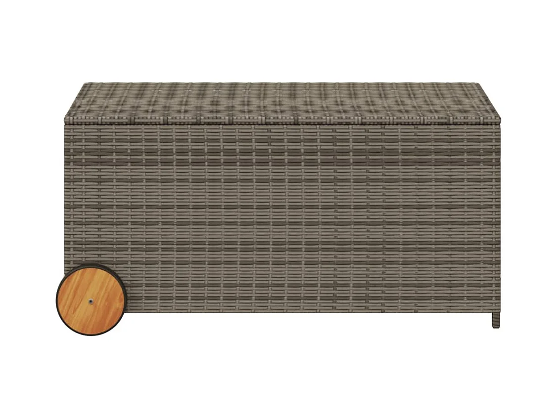 Coffre de rangement de jardin gris résine tressée bois d'acacia FR820931