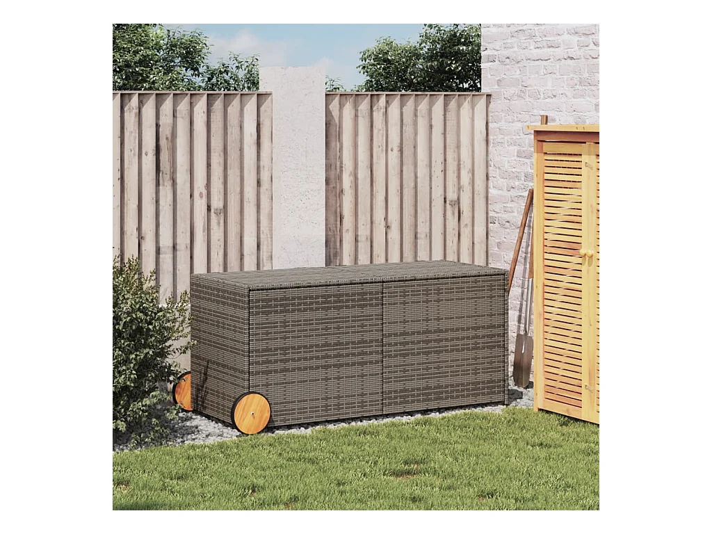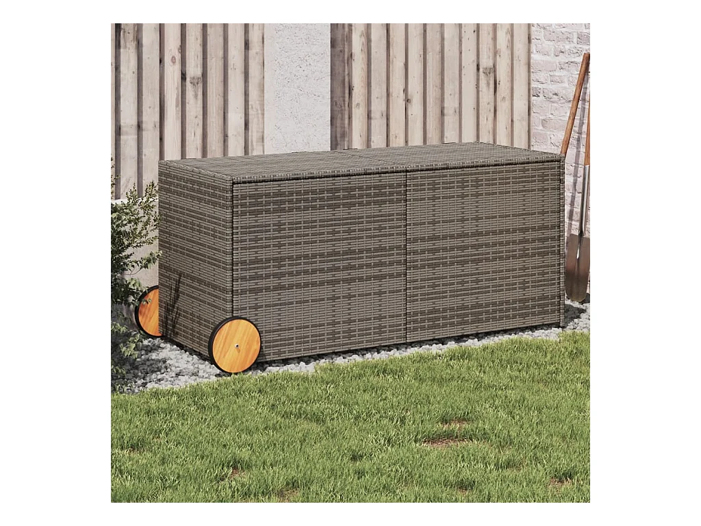 Boîte de rangement de jardin et roues gris 283L résine tressée