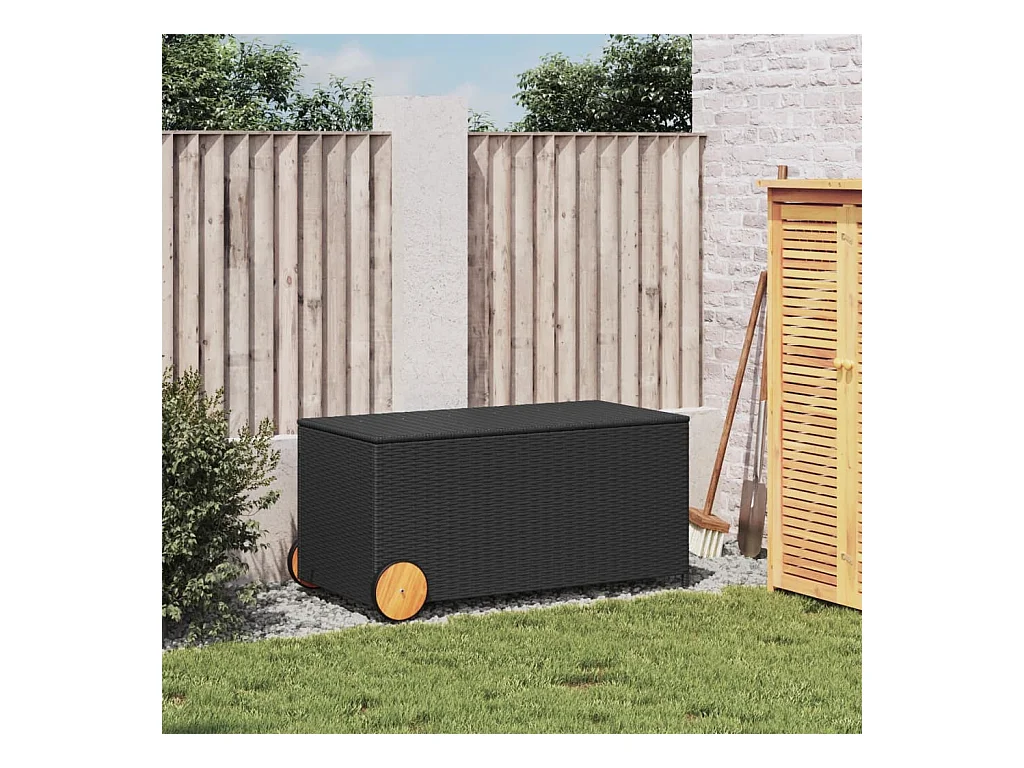 Boîte de rangement de jardin et roues noir 190L résine tressée