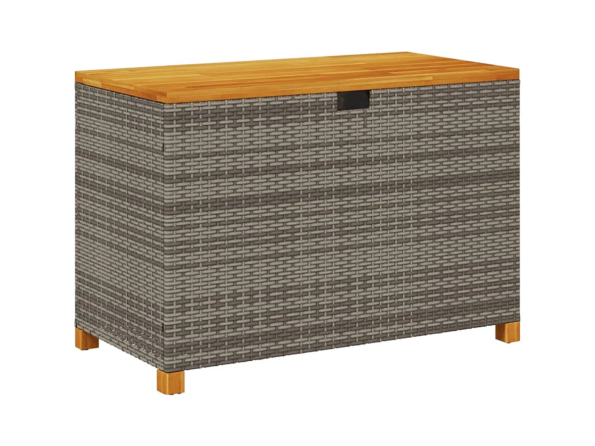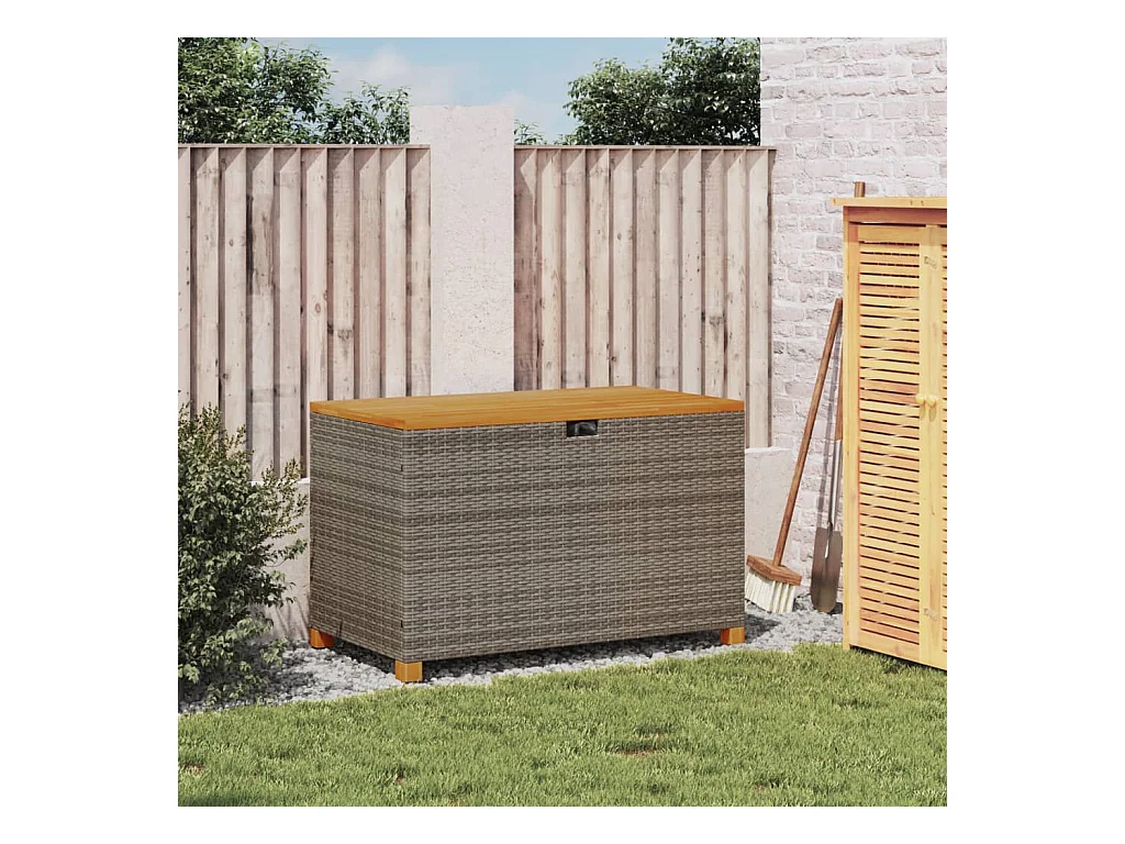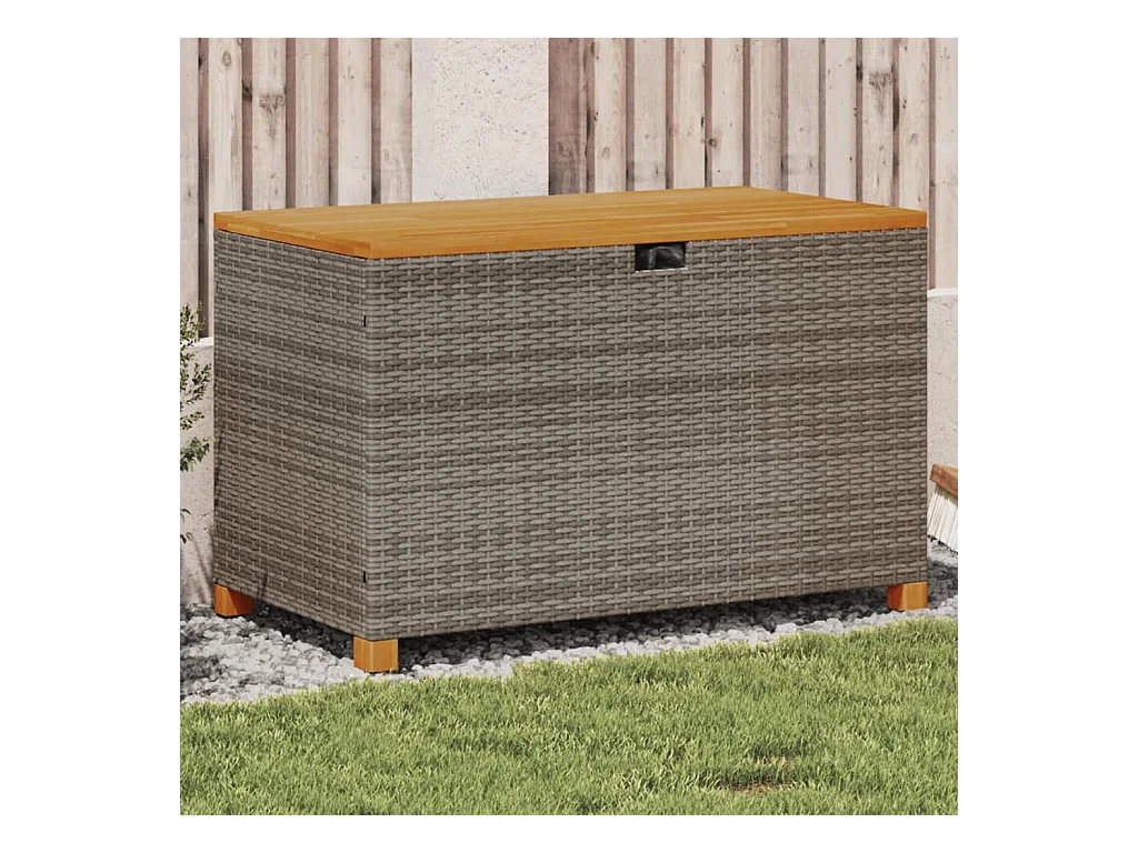 Coffre de rangement de jardin gris résine tressée bois d'acacia FR820931