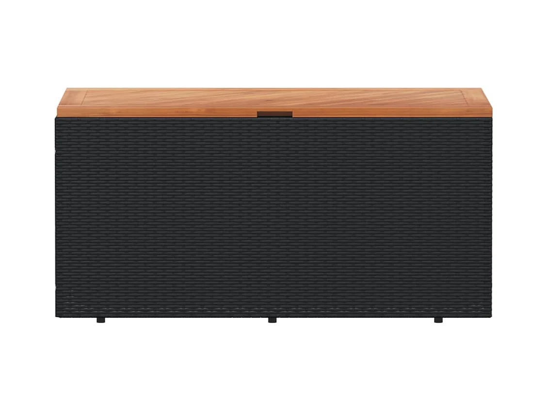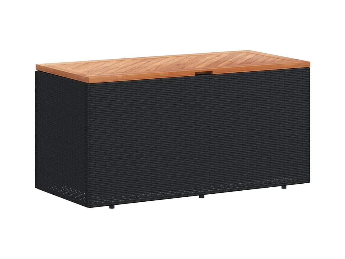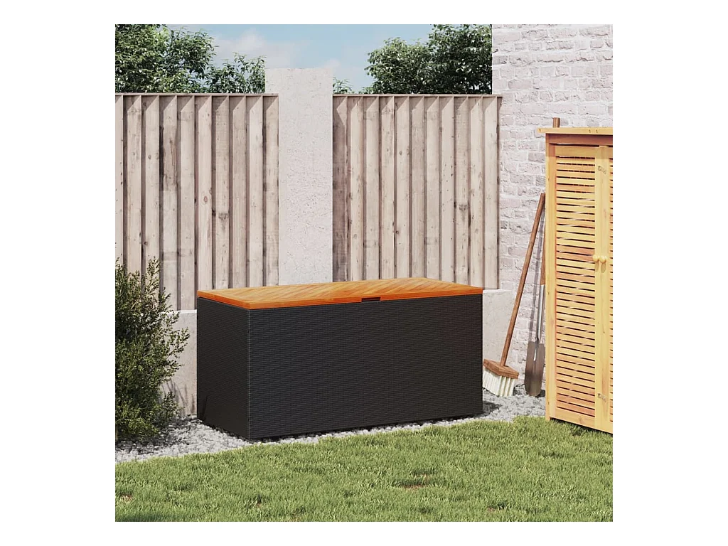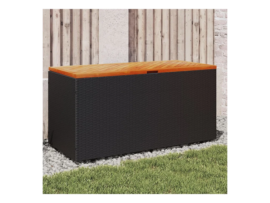Coffre de rangement de jardin noir résine tressée bois d'acacia FR813887